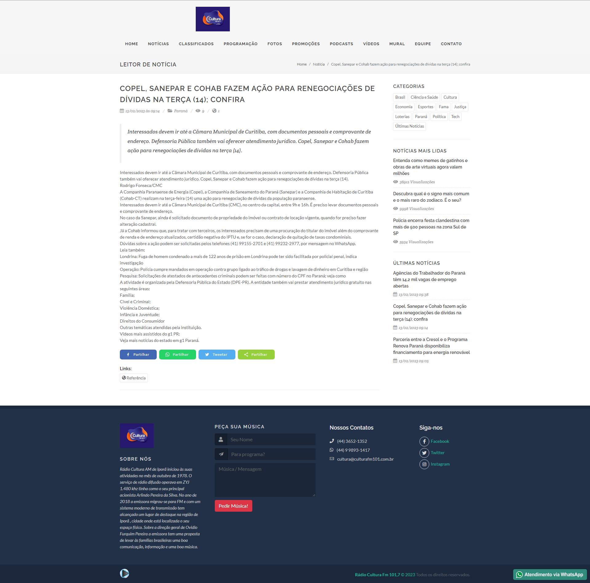 Dúvidas sobre a ação podem ser solicitadas pelos telefones (41) 99155-2701 e (41) 99232-2977, por mensagem no WhatsApp.