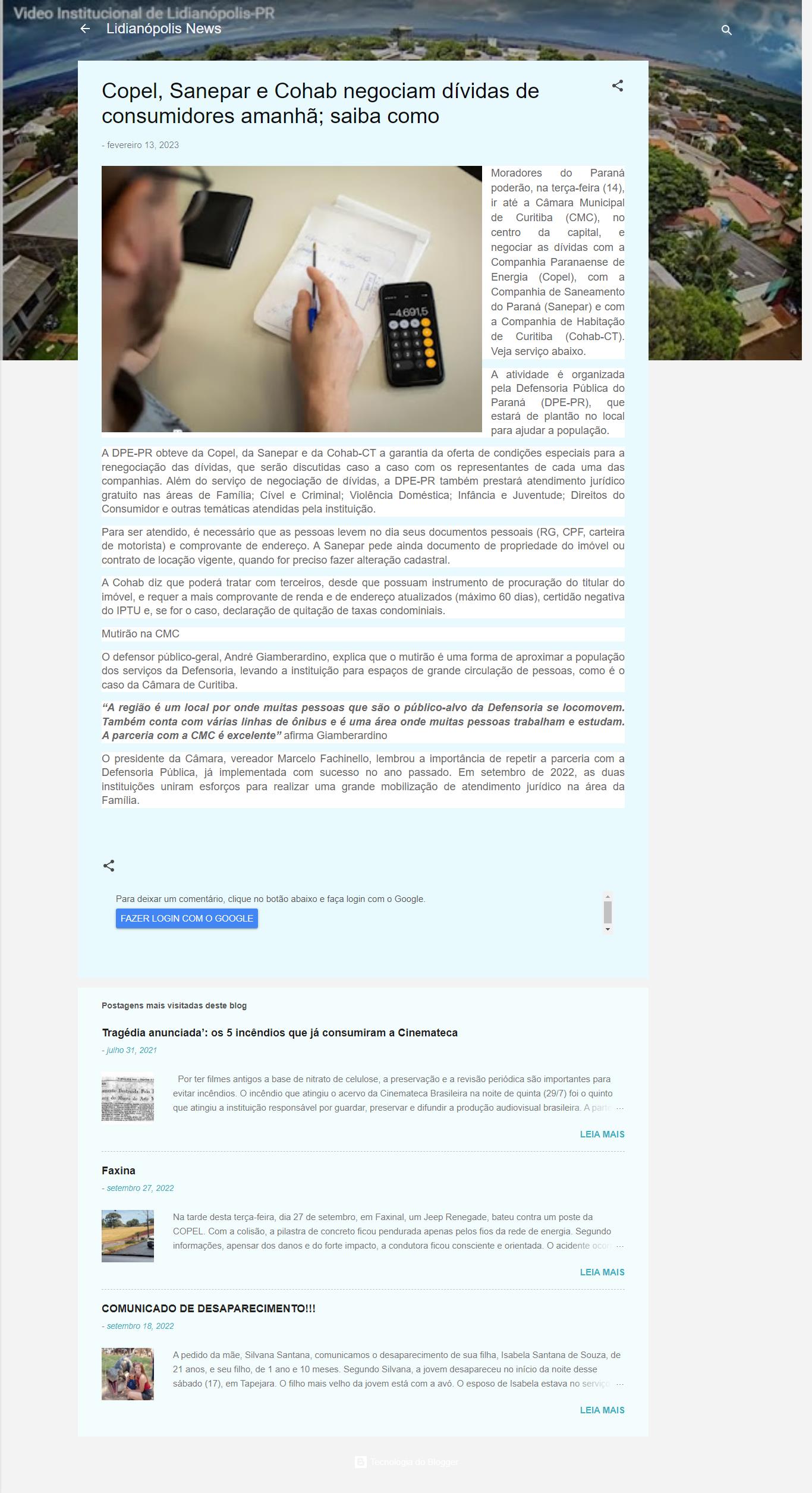 Câmara Municipal de Curitiba (CMC), no centro da capital, e negociar as dívidas com a Companhia Paranaense de Energia (Copel), com a Companhia de Saneamento do Paraná (Sanepar) e com a Companhia de Habitação de