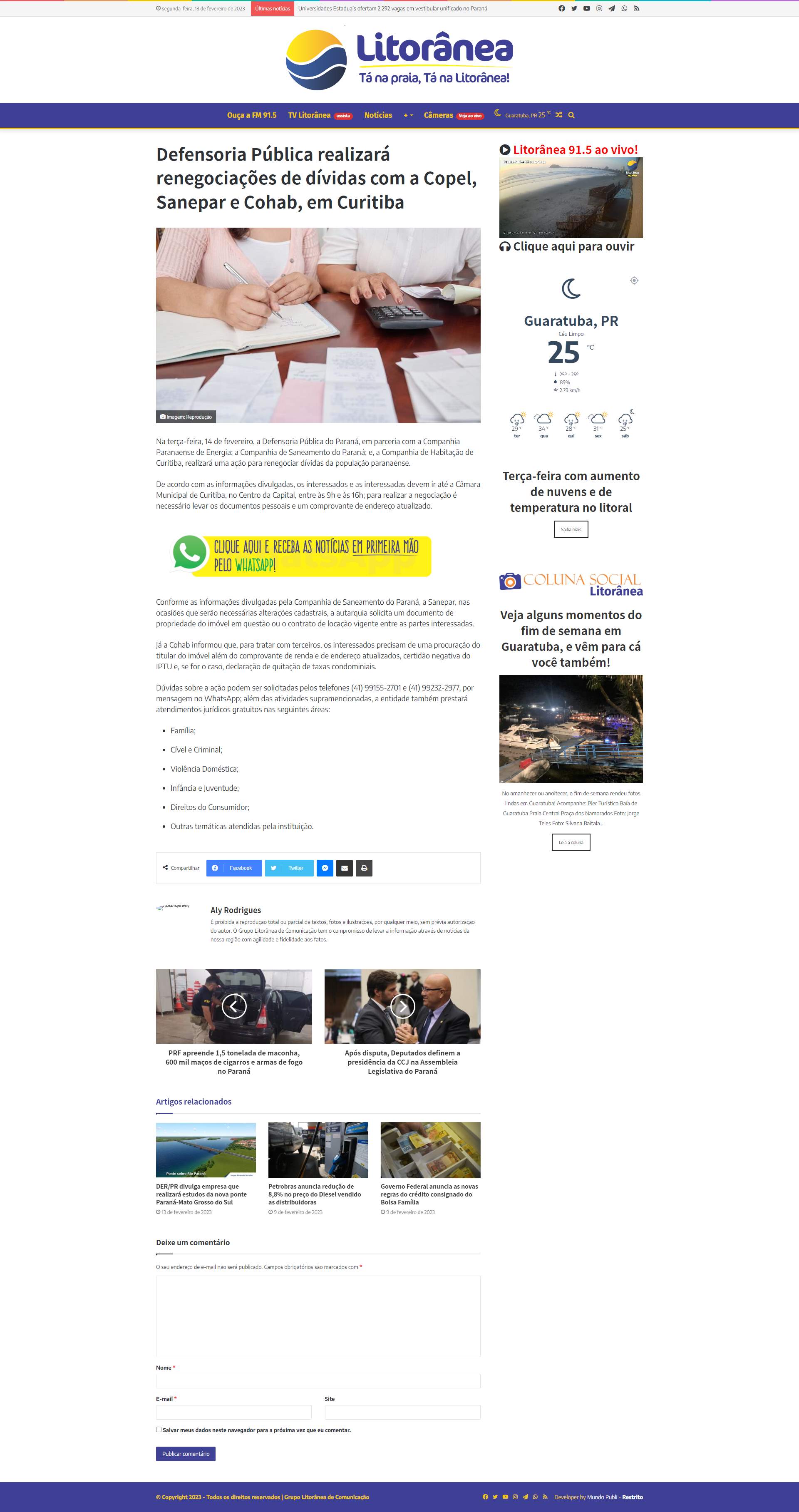 Na terça-feira, 14 de fevereiro, a Defensoria Pública do Paraná, em parceria com a Companhia Paranaense de Energia; a Companhia de Saneamento do Paraná; e, a Companhia de Habitação de