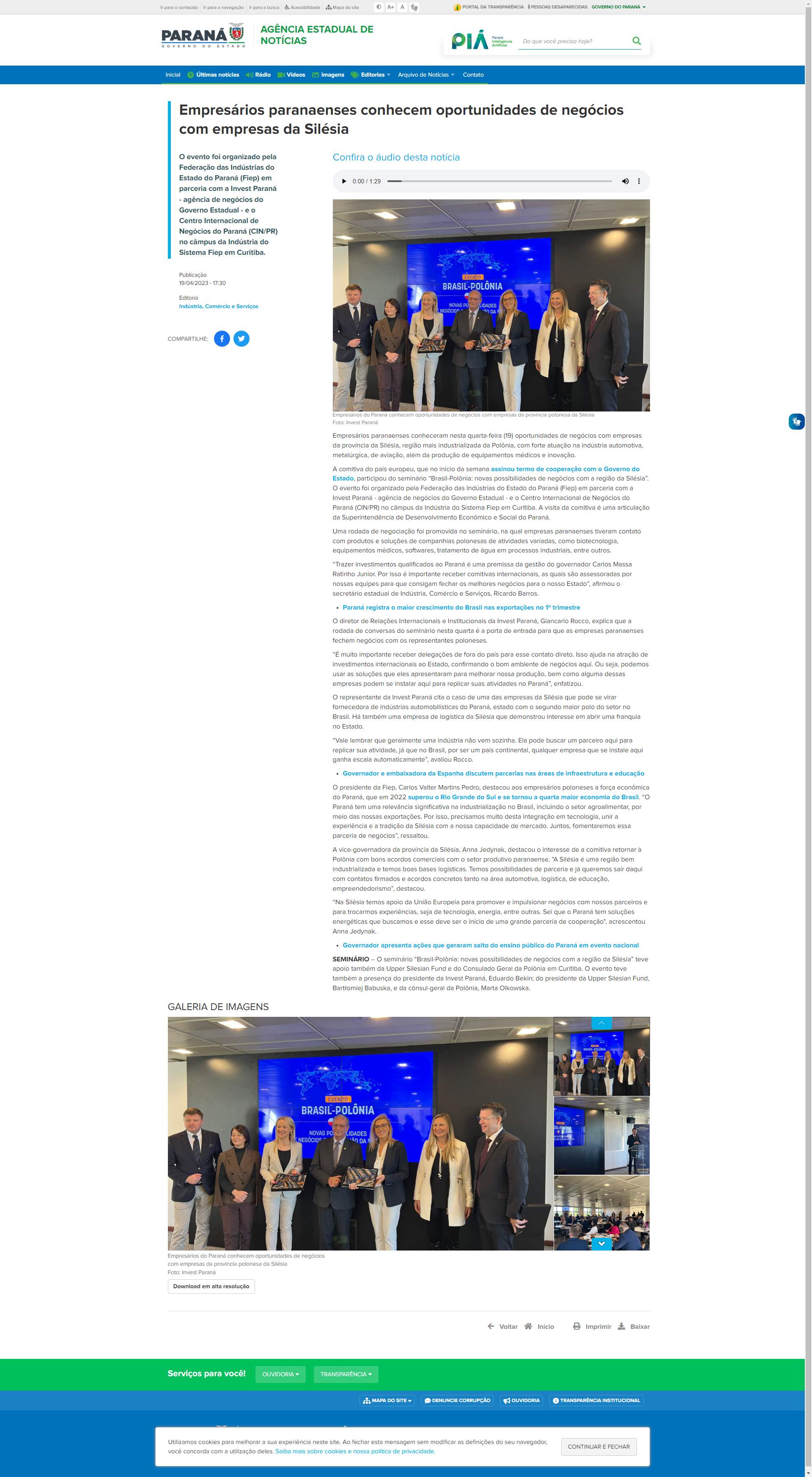 Paraná tem uma relevância significativa na industrialização no Brasil, incluindo o setor agroalimentar, por meio das nossas exportações. Por isso, precisamos muito desta integração em tecnologia, unir a experiência e a tradição da Silésia com a nossa capacidade de mercado. Juntos, fomentaremos essa parceria de negócios”, ressaltou.