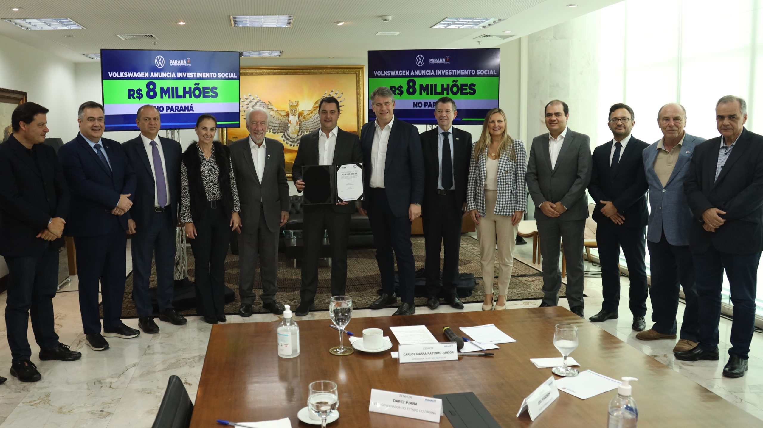 O anúncio aconteceu no Palácio Iguaçu, em Curitiba, e contou com a presença de Ciro Possobom, CEO da Volkswagen do Brasil, do Governador do