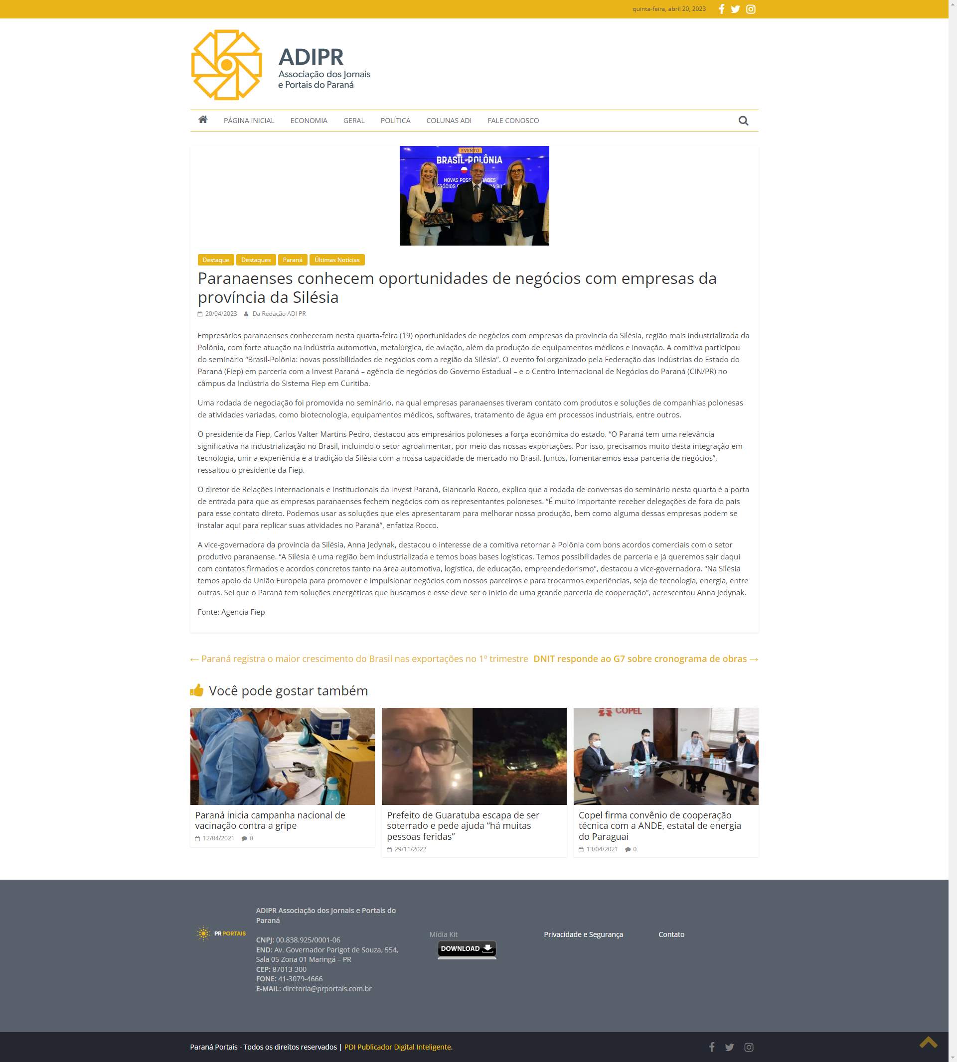 Paraná tem uma relevância significativa na industrialização no Brasil, incluindo o setor agroalimentar, por meio das nossas exportações. Por isso, precisamos muito desta integração em tecnologia, unir a experiência e a tradição da Silésia com a nossa capacidade de mercado no Brasil. Juntos, fomentaremos essa parceria de negócios”, ressaltou o