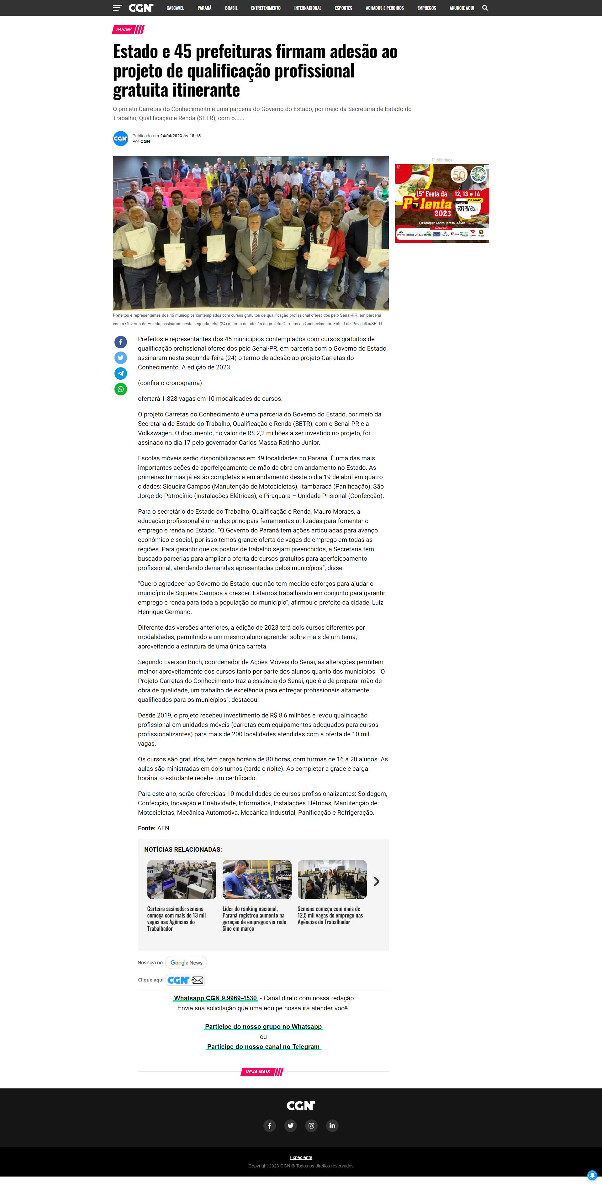 Para o secretário de Estado do Trabalho, Qualificação e Renda, Mauro Moraes, a educação profissional é uma das principais ferramentas utilizadas para fomentar o emprego e renda no Estado. “O Governo do Paraná tem ações articuladas para avanço econômico e social, por isso temos grande oferta de vagas de emprego em todas as regiões. Para garantir que os postos de trabalho sejam preenchidos, a Secretaria tem buscado parcerias para ampliar a oferta de cursos gratuitos para aperfeiçoamento profissional, atendendo demandas apresentadas pelos municípios”, disse.
