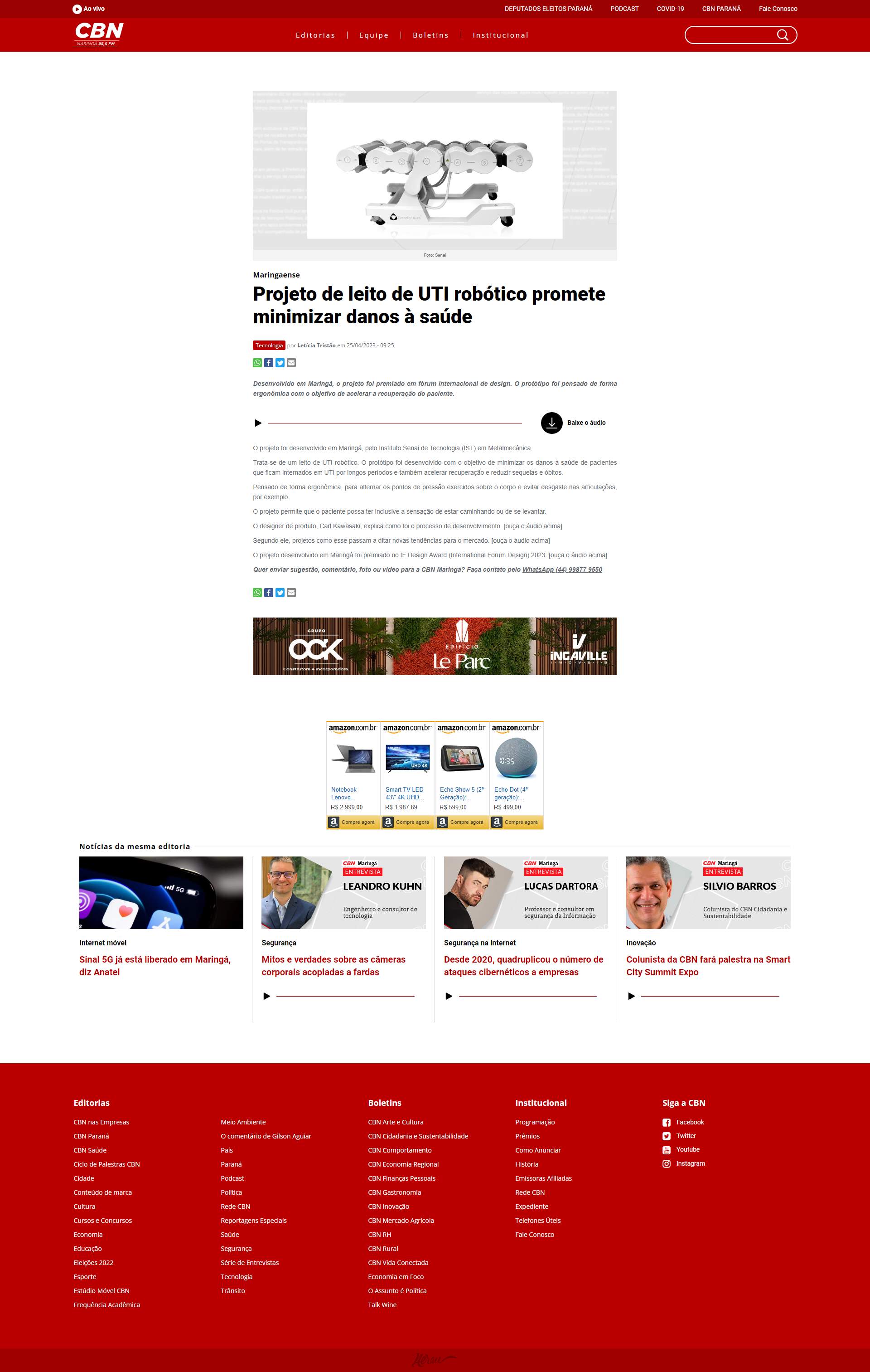 Maringá, o projeto foi premiado em fórum internacional de design. O protótipo foi pensado de forma ergonômica com o objetivo de acelerar a recuperação do paciente.
