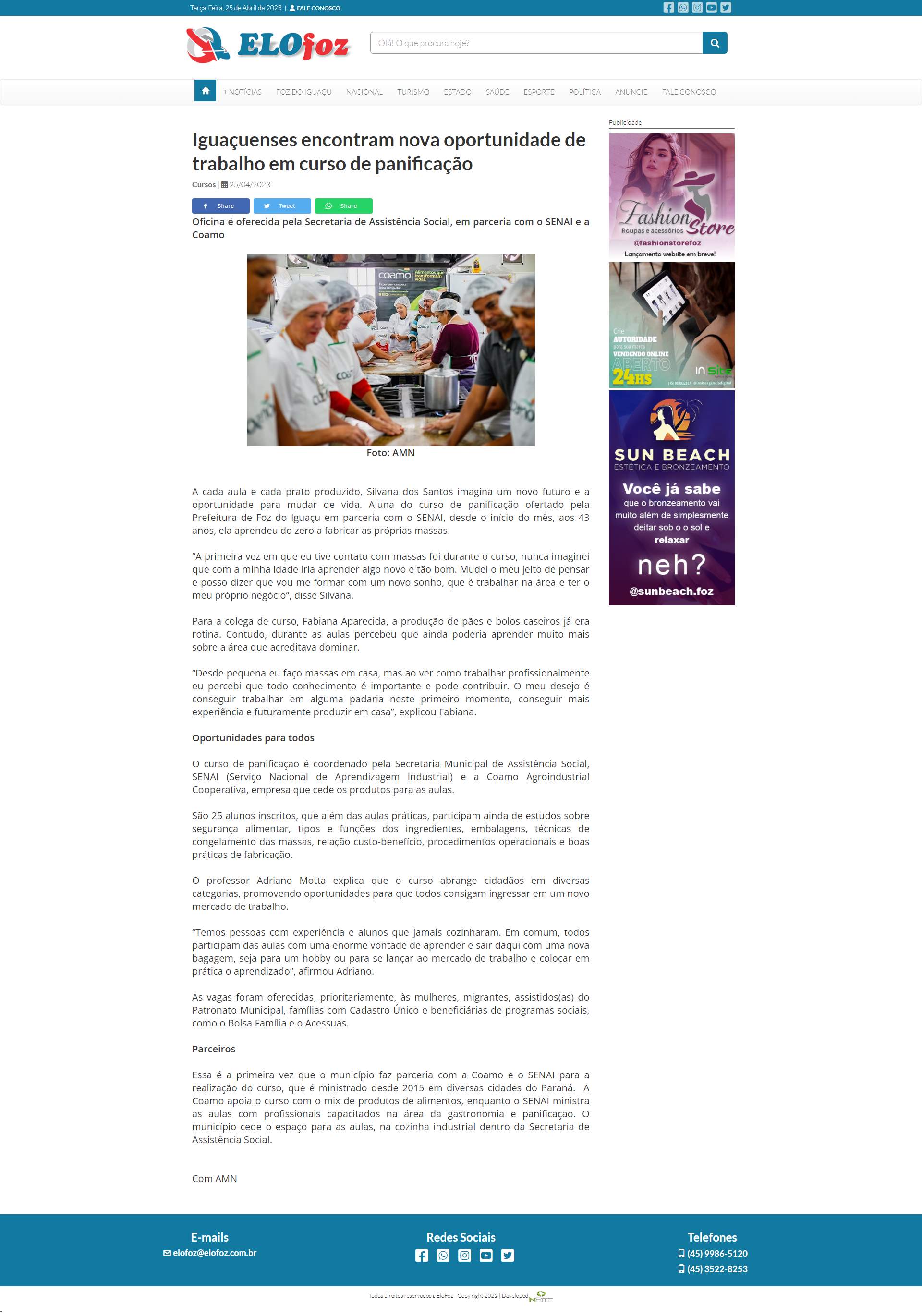 Paraná. A Coamo apoia o curso com o mix de produtos de alimentos, enquanto o SENAI ministra as aulas com profissionais capacitados na área da gastronomia e panificação. O município cede o espaço para as aulas, na cozinha industrial dentro da Secretaria de Assistência Social.
