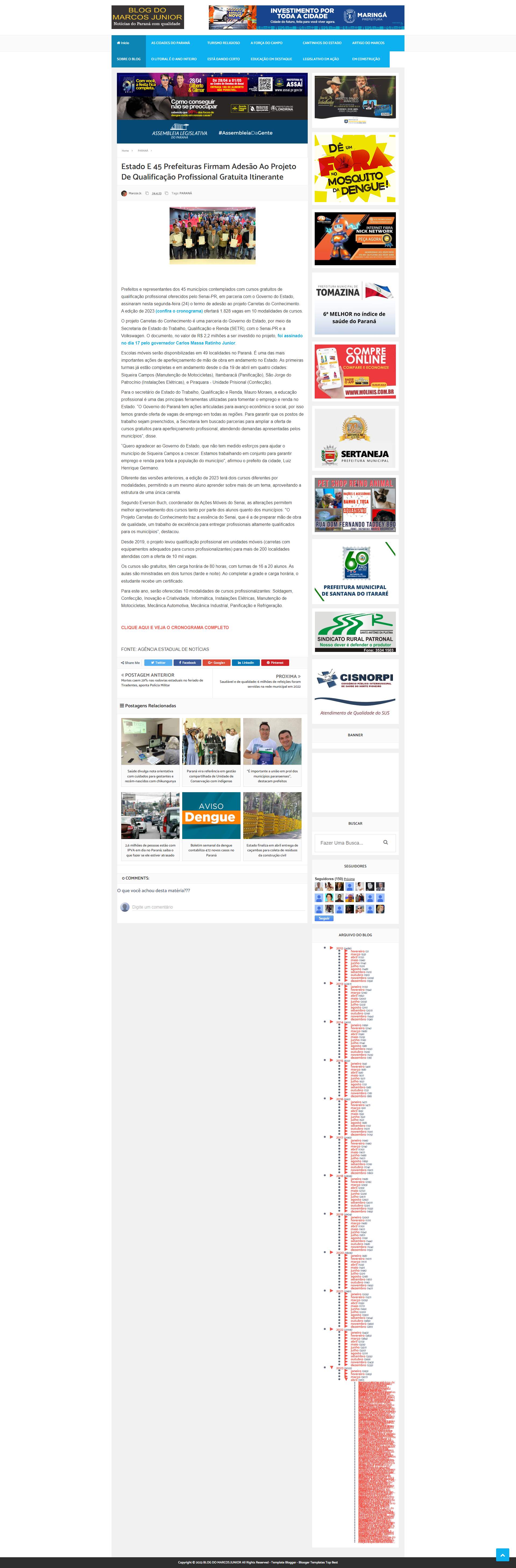 Paraná. É uma das mais importantes ações de aperfeiçoamento de mão de obra em andamento no Estado. As primeiras turmas já estão completas e em andamento desde o dia 19 de abril em quatro cidades: Siqueira Campos (Manutenção de Motocicletas), Itambaracá (Panificação), São Jorge do Patrocínio (Instalações Elétricas), e Piraquara - Unidade Prisional (Confecção).