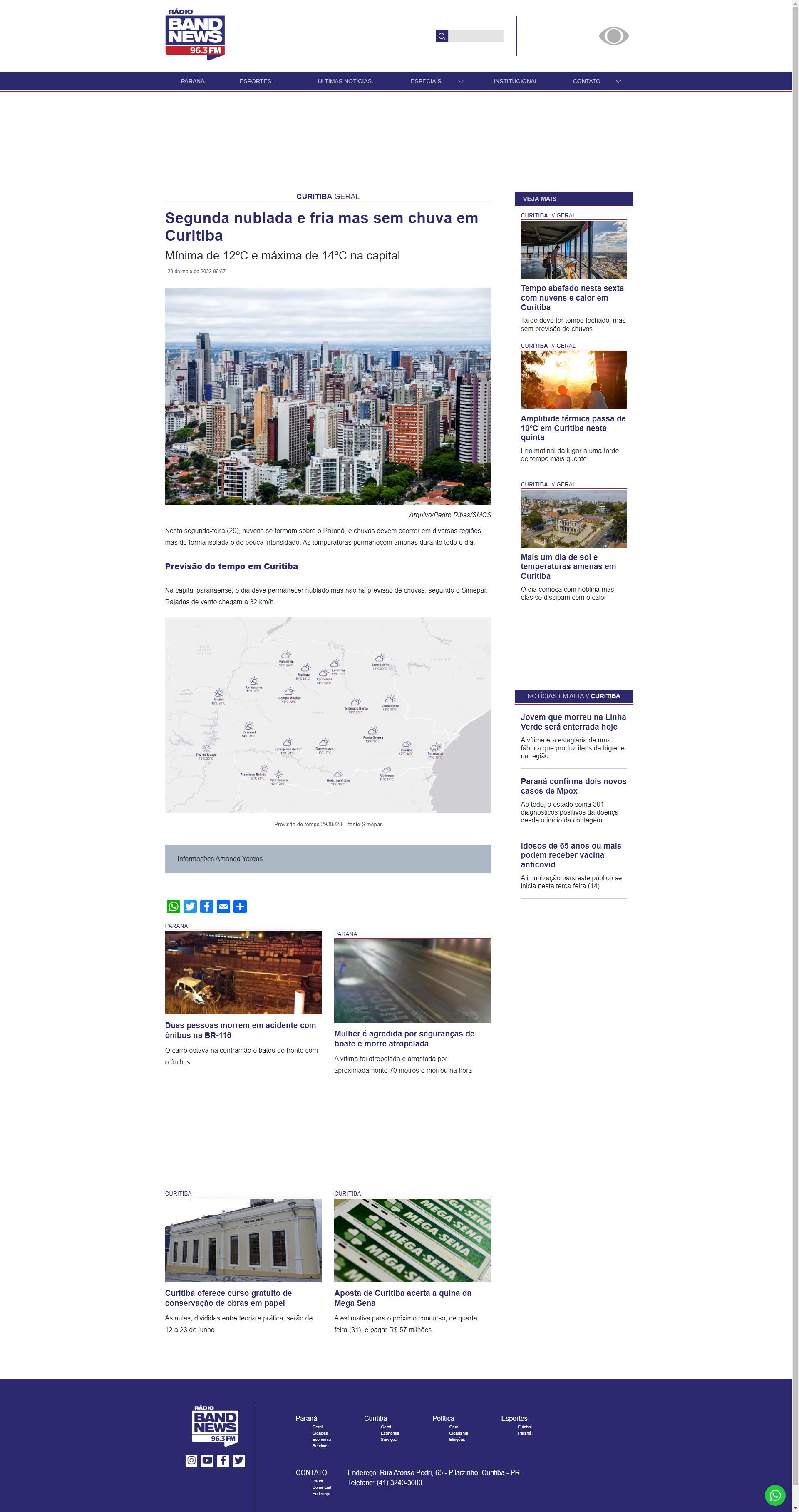 Na capital paranaense, o dia deve permanecer nublado mas não há previsão de chuvas, segundo o