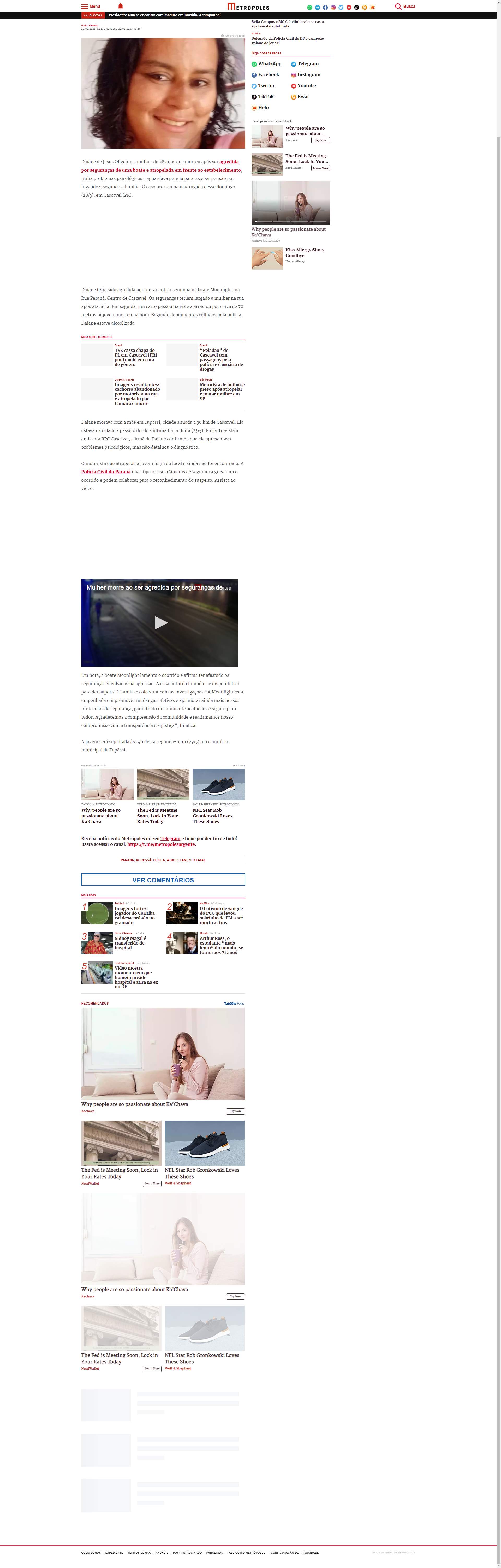 Daiane de Jesus Oliveira, a mulher de 28 anos que morreu após ser agredida por seguranças de uma boate e atropelada em frente ao estabelecimento, tinha problemas psicológicos e aguardava perícia para receber pensão por invalidez, segundo a família. O incidente ocorreu na madrugada de domingo (28/5), em Cascavel (PR).