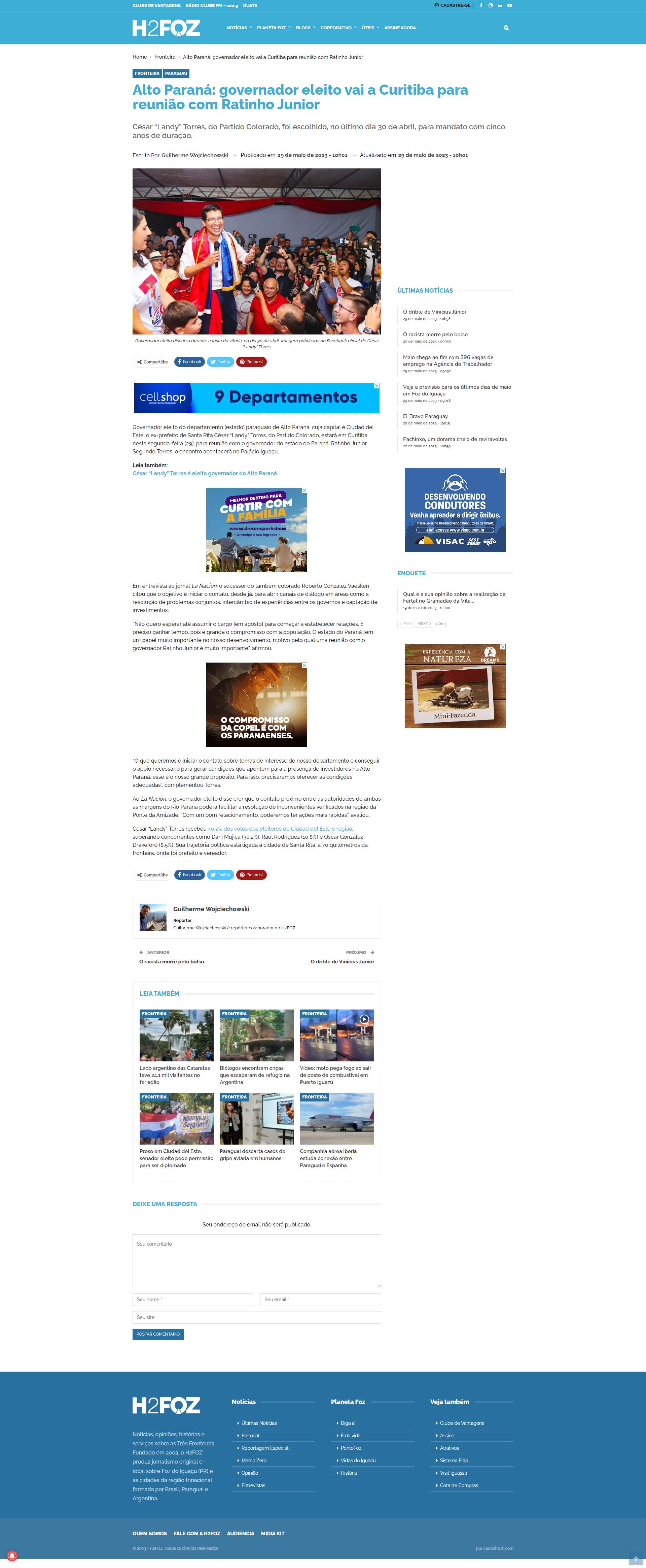 prefeito de Santa Rita César “Landy” Torres, do Partido Colorado, estará em Curitiba, nesta segunda-feira (29), para reunião com o