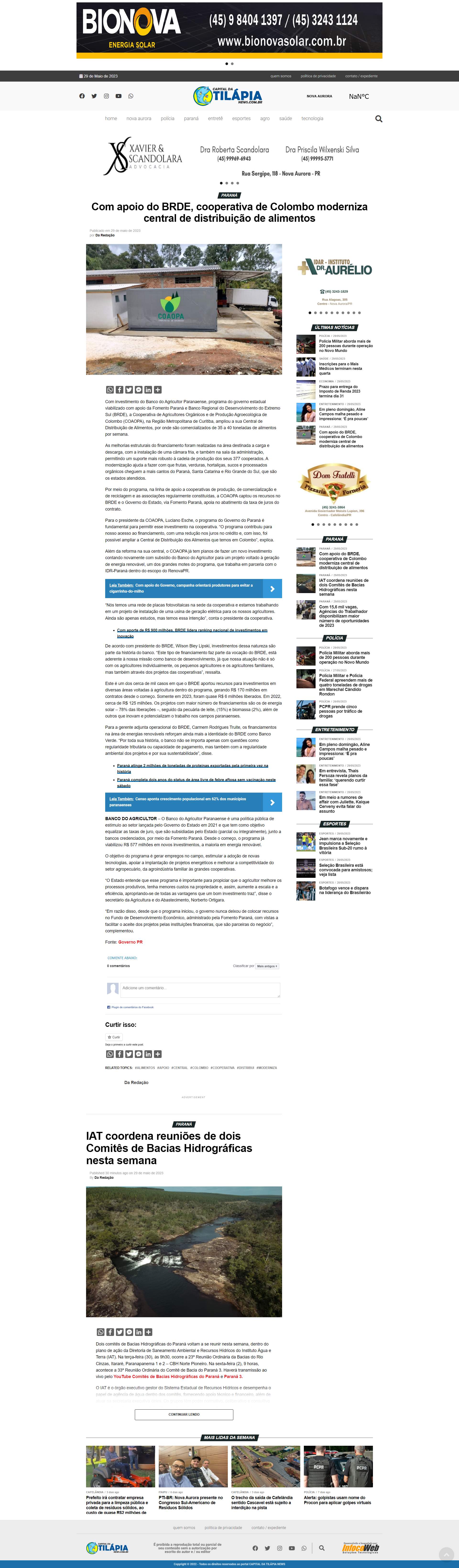 BRDE), a Cooperativa de Agricultores Orgânicos e de Produção Agroecológica de Colombo (COAOPA), na Região Metropolitana de Curitiba, ampliou a sua Central de Distribuição de Alimentos, por onde são comercializados de 35 a 40 toneladas de alimentos por semana.