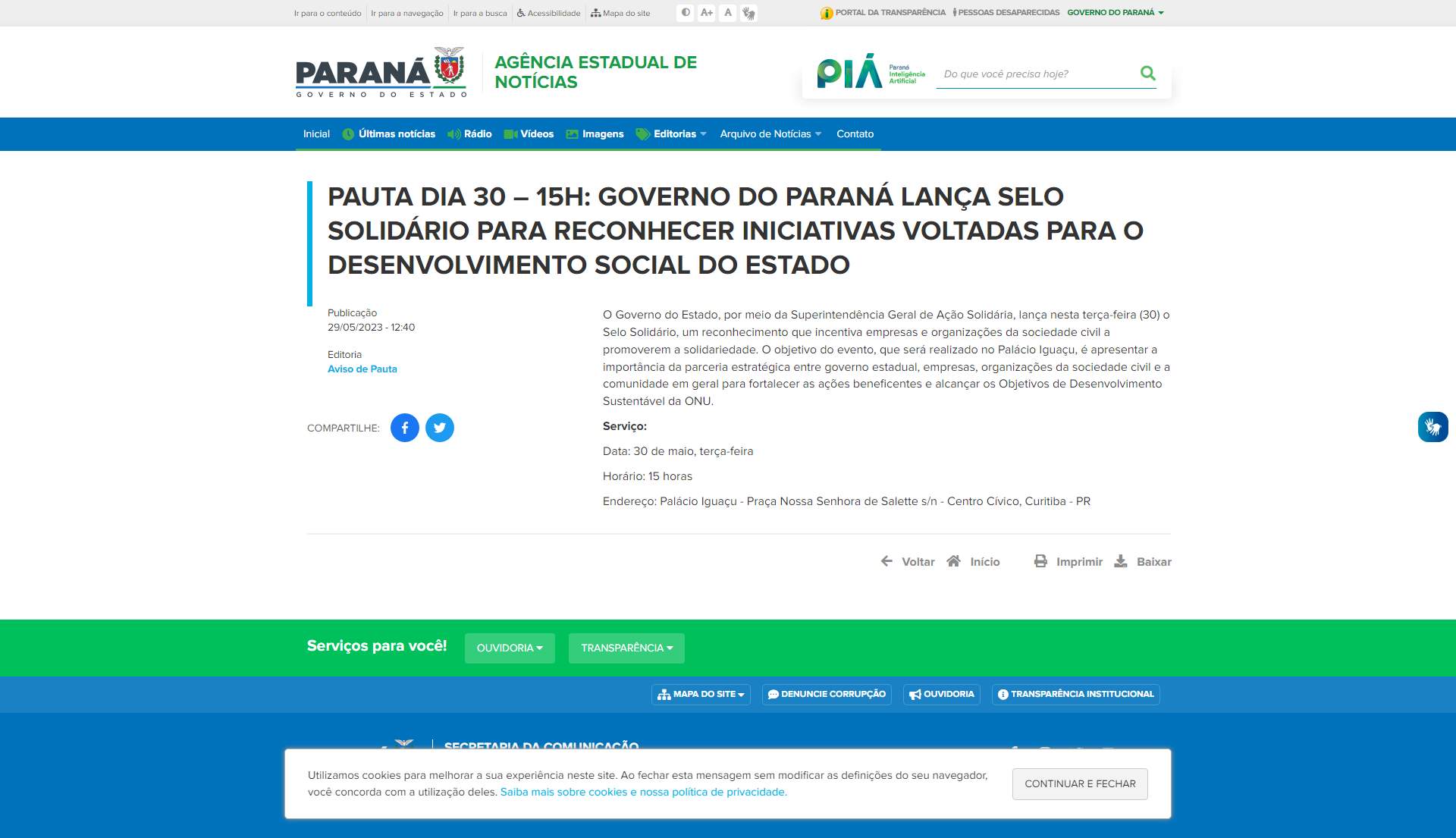 Palácio Iguaçu, é apresentar a importância da parceria estratégica entre governo estadual, empresas, organizações da sociedade civil e a comunidade em geral para fortalecer as ações beneficentes e alcançar os Objetivos de Desenvolvimento Sustentável da ONU.
