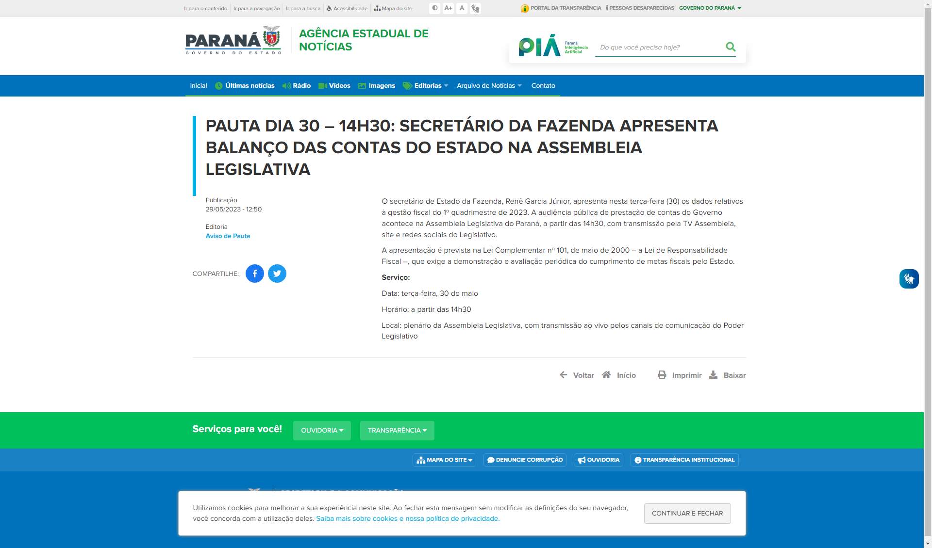 Paraná, a partir das 14h30, com transmissão pela TV Assembleia, site e redes sociais do Legislativo.