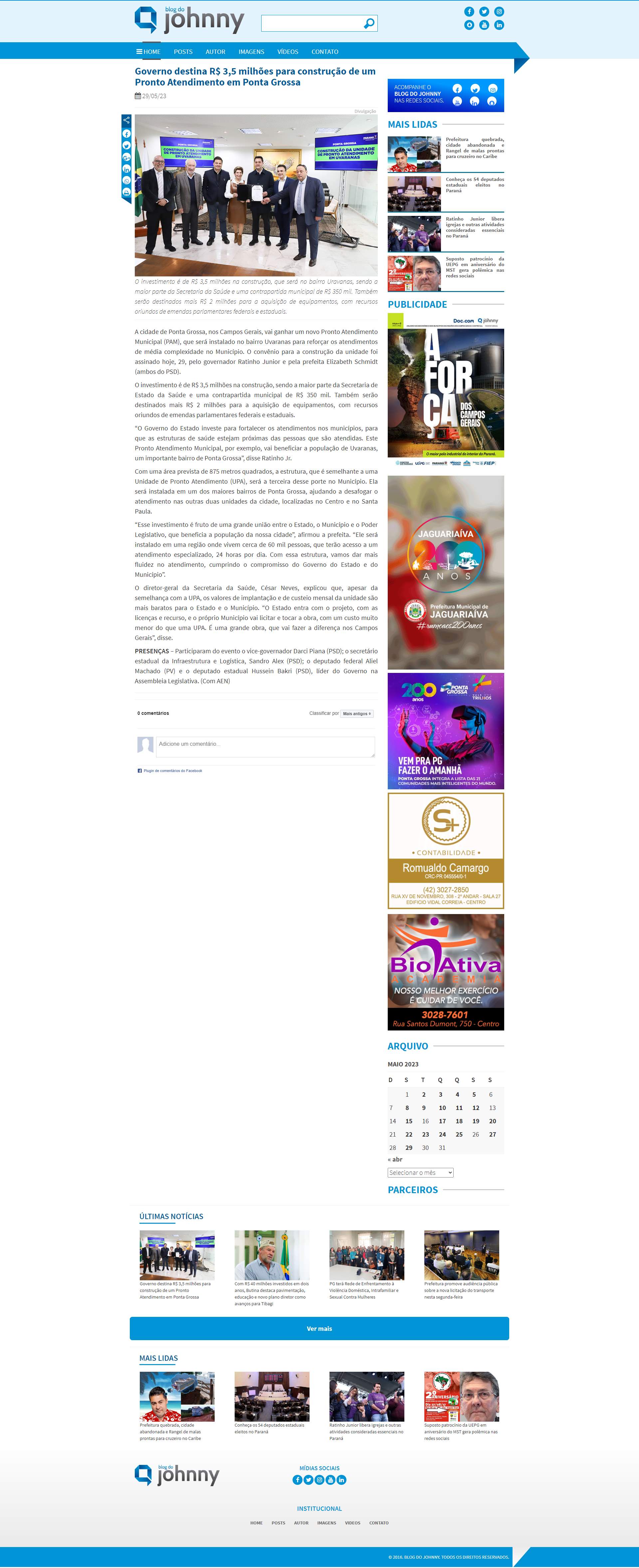 Estado investe para fortalecer os atendimentos nos municípios, para que as estruturas de saúde estejam próximas das pessoas que são atendidas. Este Pronto Atendimento Municipal, por exemplo, vai beneficiar a população de Uvaranas, um importante bairro de Ponta Grossa”, disse