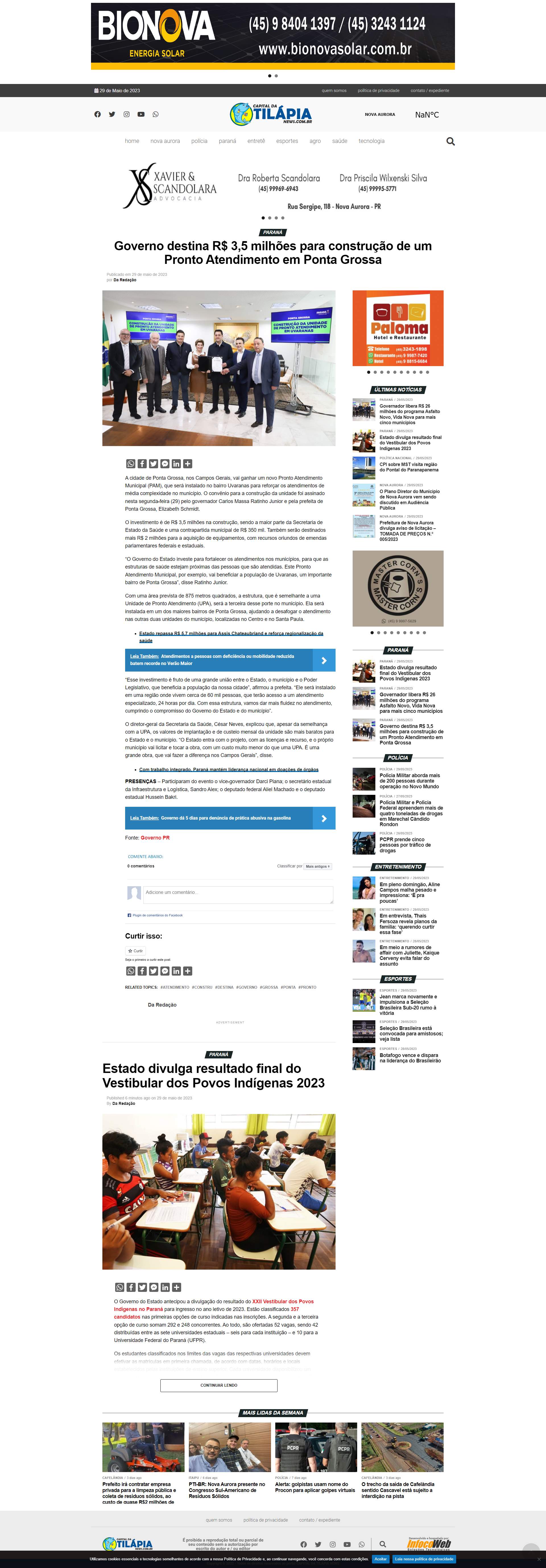 Estado entra com o projeto, com as licenças e recurso, e o próprio município vai licitar e tocar a obra, com um custo muito menor do que uma UPA. É uma grande obra, que vai fazer a diferença nos Campos Gerais”, disse.