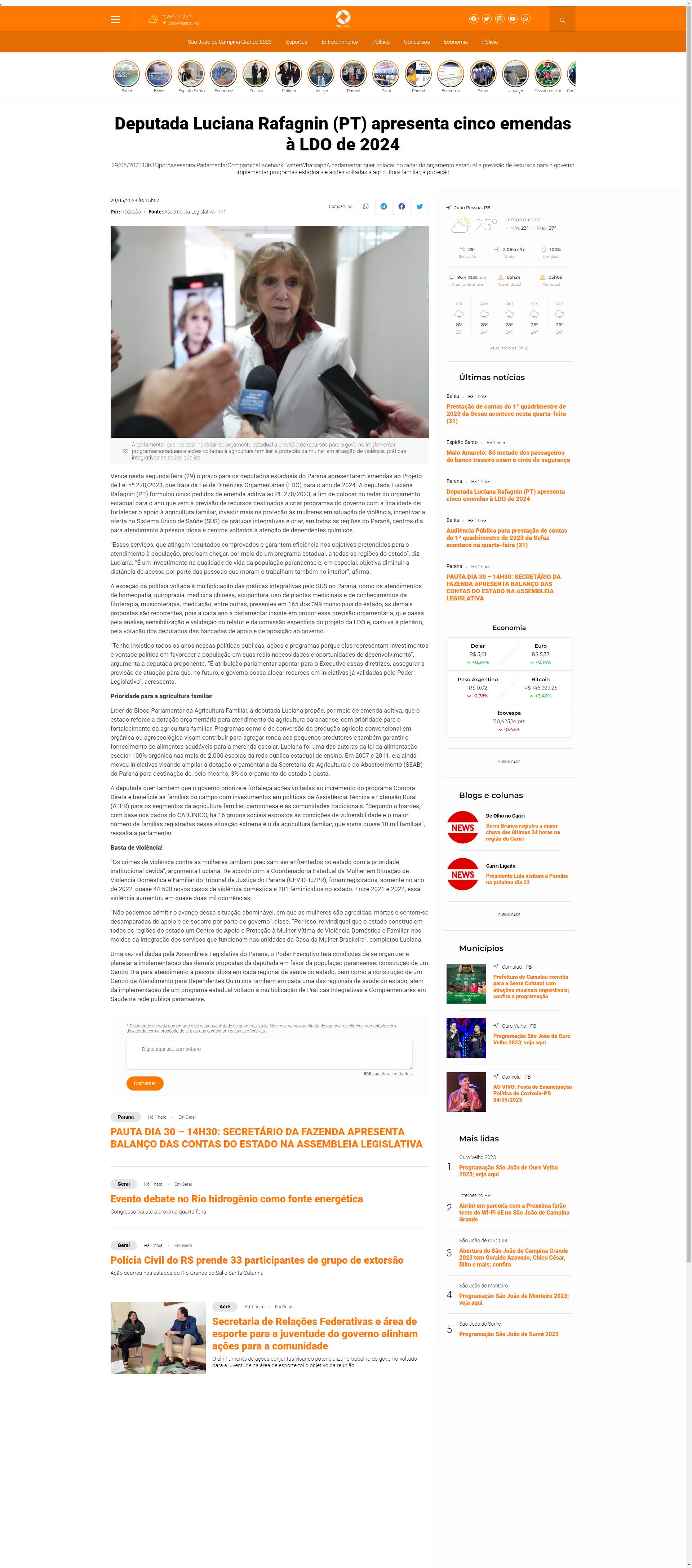 Vence nesta segunda-feira (29) o prazo para os deputados estaduais do Paraná apresentarem emendas ao Projeto de Lei nº 270/2023, que trata da Lei de Diretrizes Orçamentárias (LDO) para o ano de 2024. A deputada Luciana Rafagnin (PT) formulou cinco pedidos de emenda aditiva ao PL 270/2023, a fim de colocar no radar do orçamento estadual para o ano que vem a previsão de recursos destinados a criar programas do governo com a finalidade de: fortalecer o apoio à agricultura familiar, investir mais na proteção às mulheres em situação de violência, incentivar a oferta no Sistema Único de Saúde (SUS) de práticas integrativas e criar, em todas as regiões do Paraná, centros-dia para atendimento à pessoa idosa e centros voltados à atenção de dependentes químicos.