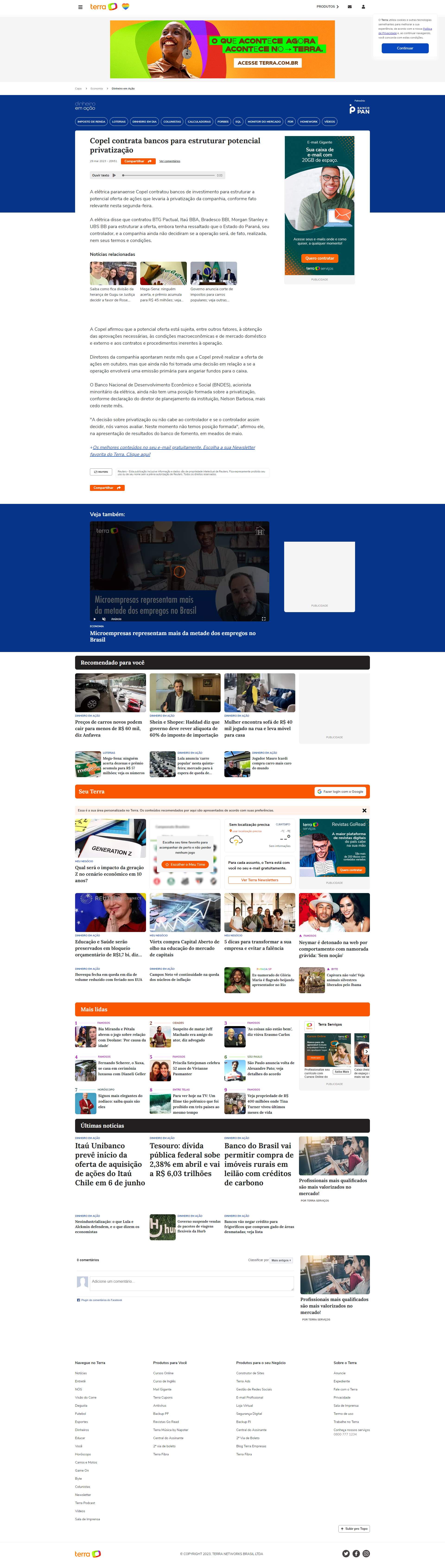 Copel contratou bancos de investimento para estruturar a potencial oferta de ações que levaria à privatização da companhia, conforme fato relevante nesta segunda-feira.