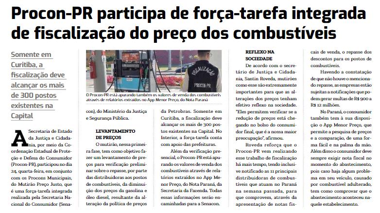 Procon-PR participa de força-tarefa integrada de fiscalização do preço dos combustíveis