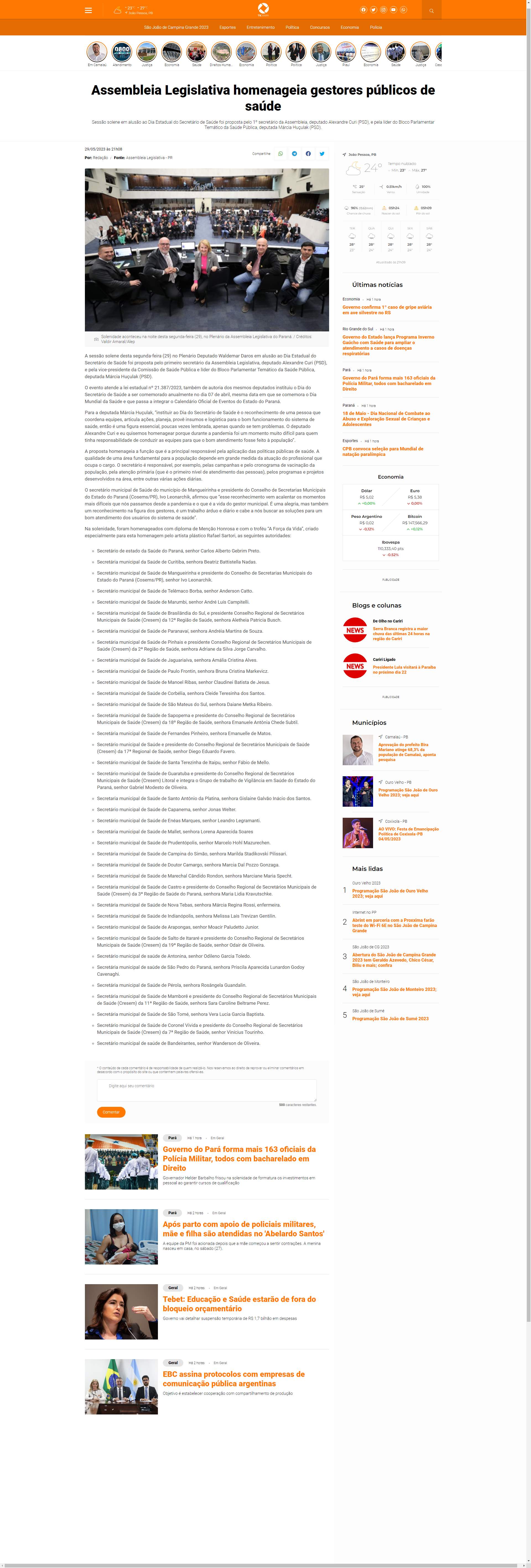 A sessão solene desta segunda-feira (29) no Plenário Deputado Waldemar Daros em alusão ao Dia Estadual do Secretário de Saúde foi proposta pelo primeiro secretário da Assembleia Legislativa, deputado Alexandre Curi (PSD), e pela vice-presidente da Comissão de Saúde Pública e líder do Bloco Parlamentar Temático da Saúde Pública, deputada Márcia Huçulak (PSD).