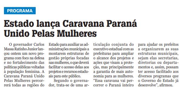O governador Carlos Massa Ratinho Junior lançou ontem um novo programa com foco na defesa e no fortalecimento das políticas públicas voltadas à população feminina. A Caravana Paraná Unido Pelas Mulheres percorrerá todas as regiões do Estado para auxiliar as administrações municipais a montarem estruturas de gestão próprias focadas nas mulheres, o que deverá facilitar o acesso delas aos projetos e recursos estaduais para este público. Segundo o governador, trata-se de uma articulação conjunta do executivo estadual com as prefeituras para ampliar o alcance dos projetos e ações que visam a proteção, mas principalmente a garantia de mais autonomia para as mulheres. “Essa caravana vai percorrer o Paraná inteiro para ajudar os prefeitos a organizarem as suas estruturas municipais, sejam elas secretarias, diretorias ou departamentos e, assim, possam ter acesso facilitado aos diversos programas que o Governo do Estado já desenvolve”, afirmou.