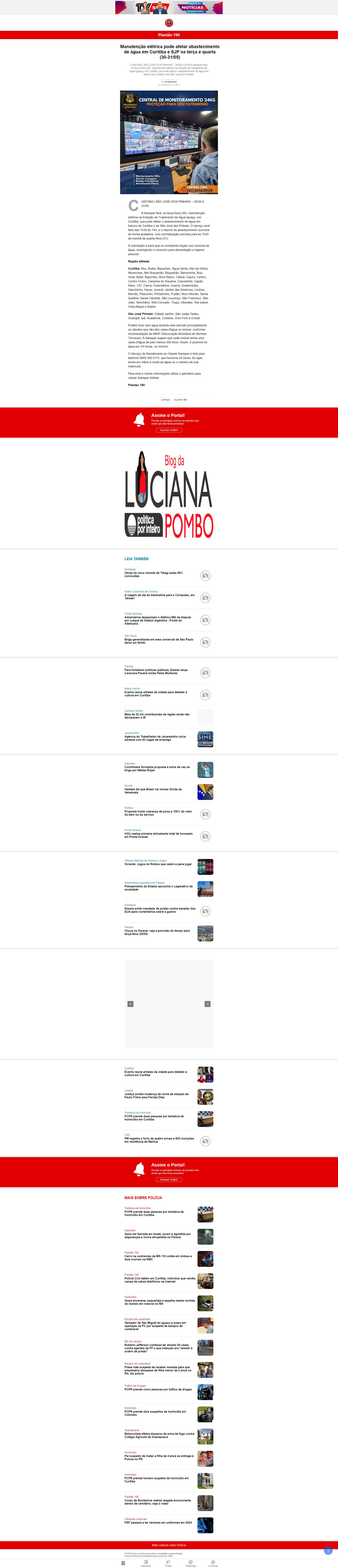Sanepar fará, na terça-feira (30), manutenção elétrica na Estação de Tratamento de Água Iguaçu, em Curitiba, que pode afetar o abastecimento de água em bairros de Curitiba e de São José dos Pinhais. O serviço será feito das 7h30 às 14h, e o retorno do abastecimento ocorrerá de forma gradativa, com normalização prevista para as 7h30 da manhã de quarta-feira (31).