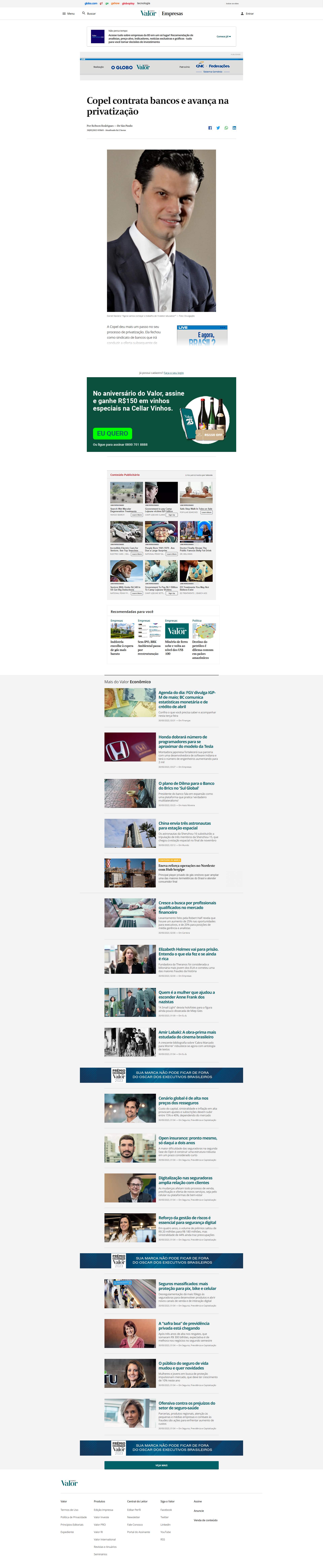 Copel deu mais um passo no seu processo de privatização. Ela fechou como sindicato de bancos que irá conduzir a oferta subsequente de ações (follow-on) que resultará na sua privatização. Farão parte o banco BTG Pactual, Itaú BBA, Bradesco BBI, Morgan Stanley e o Brasil Corretora de Câmbio, Títulos e Valores Mobiliários, que serão os coordenadores na estruturação da potencial oferta.