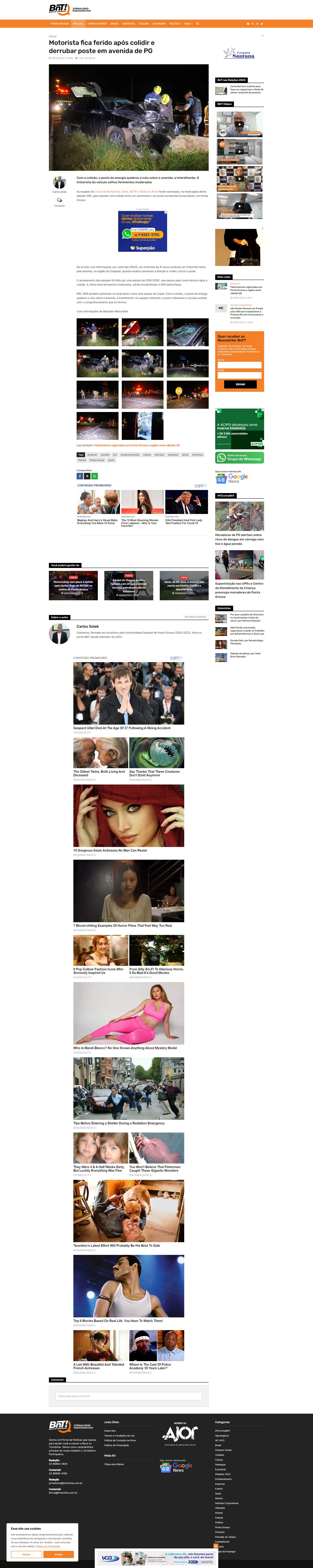 Com a colisão, o poste de energia quebrou e caiu sobre a avenida, a interditando. O motorista do veículo sofreu ferimentos moderados