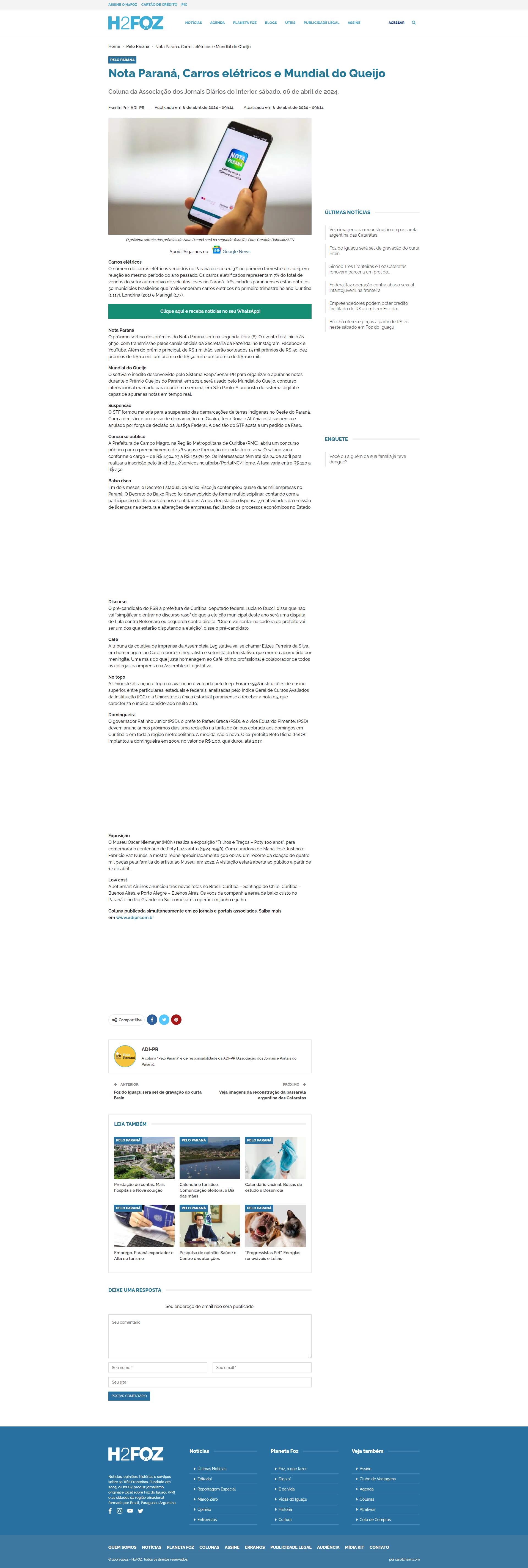Paraná cresceu 123% no primeiro trimestre de 2024, em relação ao mesmo período do ano passado. Os carros eletrificados representam 7% do total de vendas do setor automotivo de veículos leves no