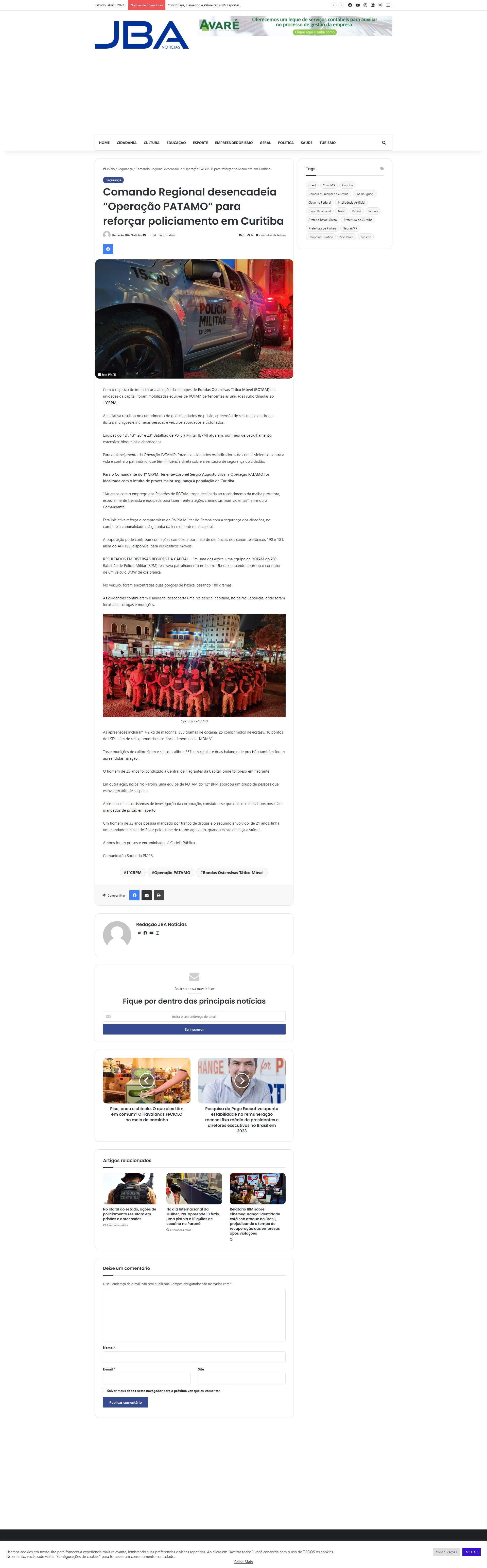 Polícia Militar do Paraná com a segurança dos cidadãos, no combate à criminalidade e à garantia da lei e da ordem na capital.