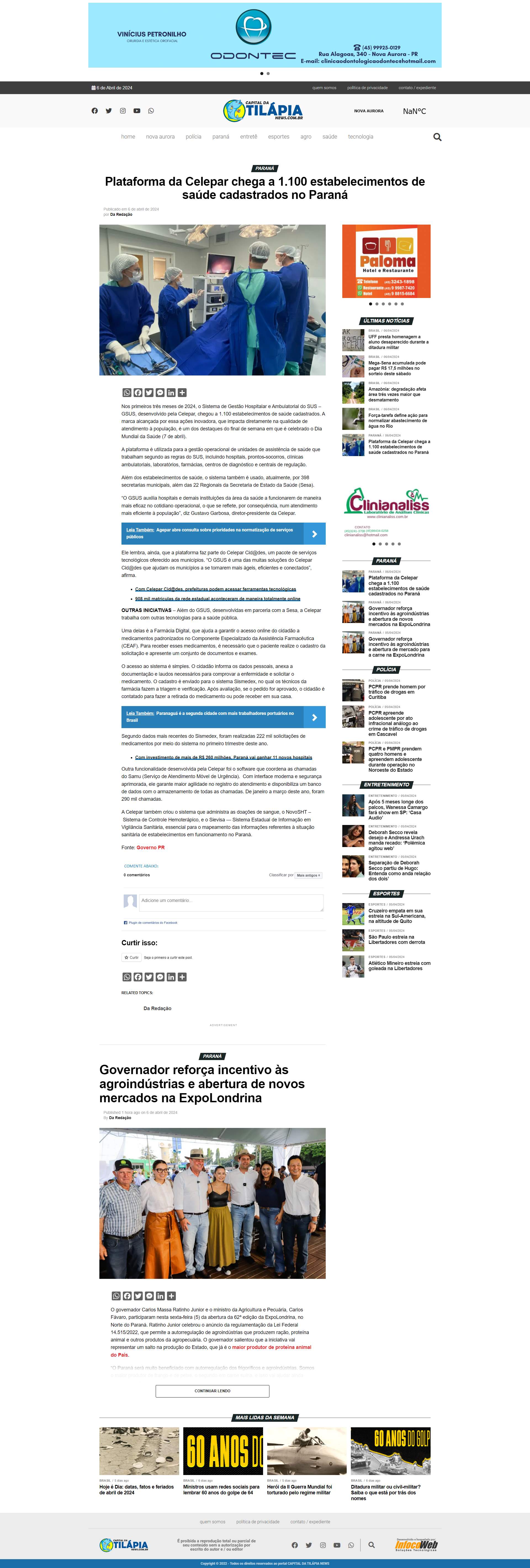Celepar, chegou a 1.100 estabelecimentos de saúde cadastrados. A marca alcançada por essa ações inovadora, que impacta diretamente na qualidade de atendimento à população, é um dos destaques do final de semana em que é celebrado o Dia Mundial da Saúde (7 de abril).