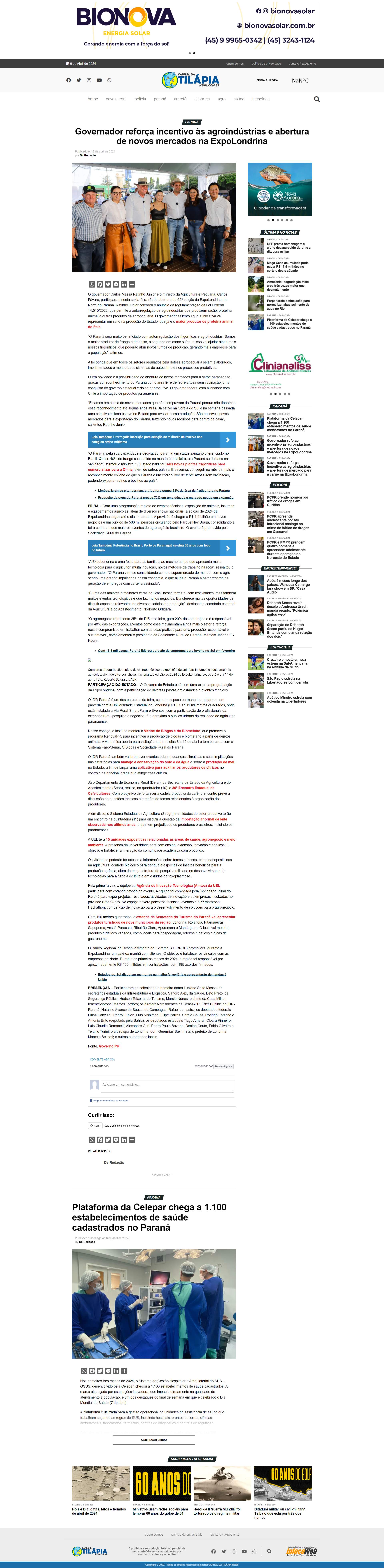 Londrina é uma festa para as famílias, ao mesmo tempo que apresenta muita tecnologia para o agricultor, muita inovação, novos métodos de trabalho na roça”, ressaltou o