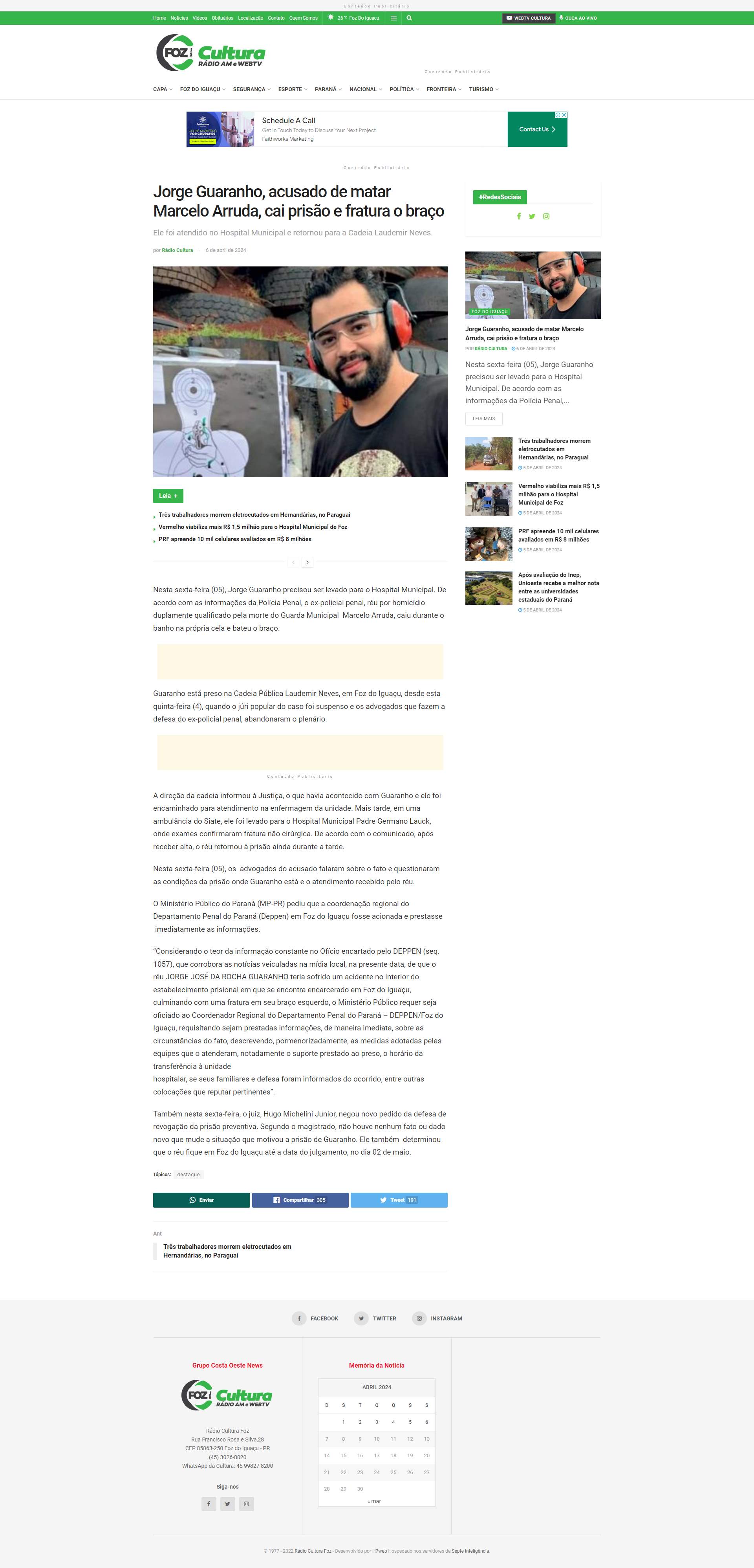 Guaranho e ele foi encaminhado para atendimento na enfermagem da unidade. Mais tarde, em uma ambulância do Siate, ele foi levado para o Hospital Municipal Padre Germano Lauck, onde exames confirmaram fratura não cirúrgica. De acordo com o comunicado, após receber alta, o réu retornou à prisão ainda durante a tarde.