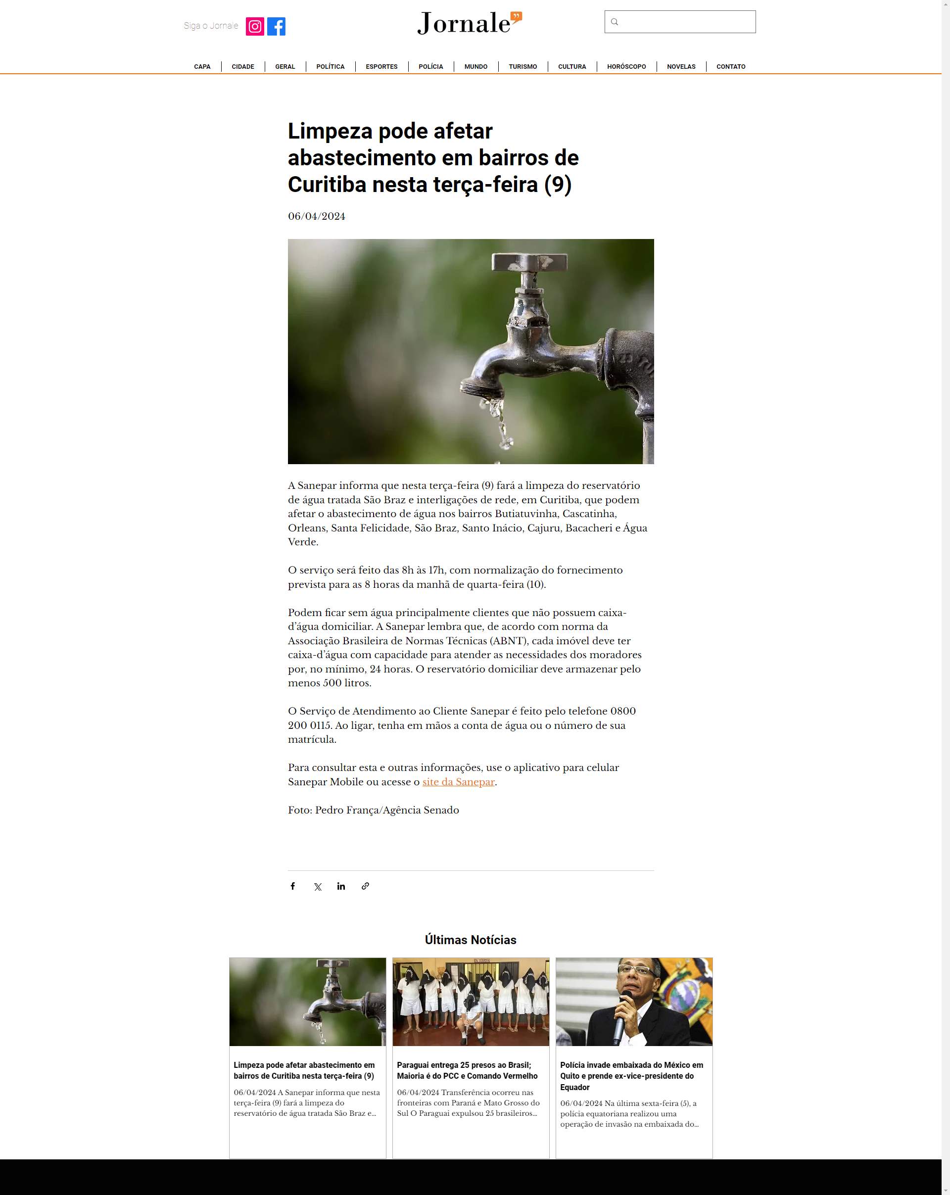 Sanepar.Para consultar esta e outras informações, use o aplicativo para celular