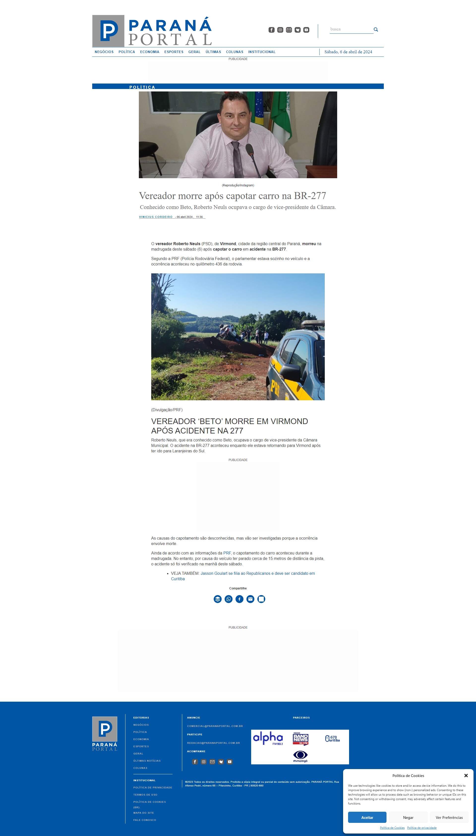 277Roberto Neuls, que era conhecido como Beto, ocupava o cargo de vice-presidente da Câmara Municipal. O acidente na BR-277 aconteceu enquanto ele estava retornando para Virmond após ter ido para Laranjeiras do Sul.