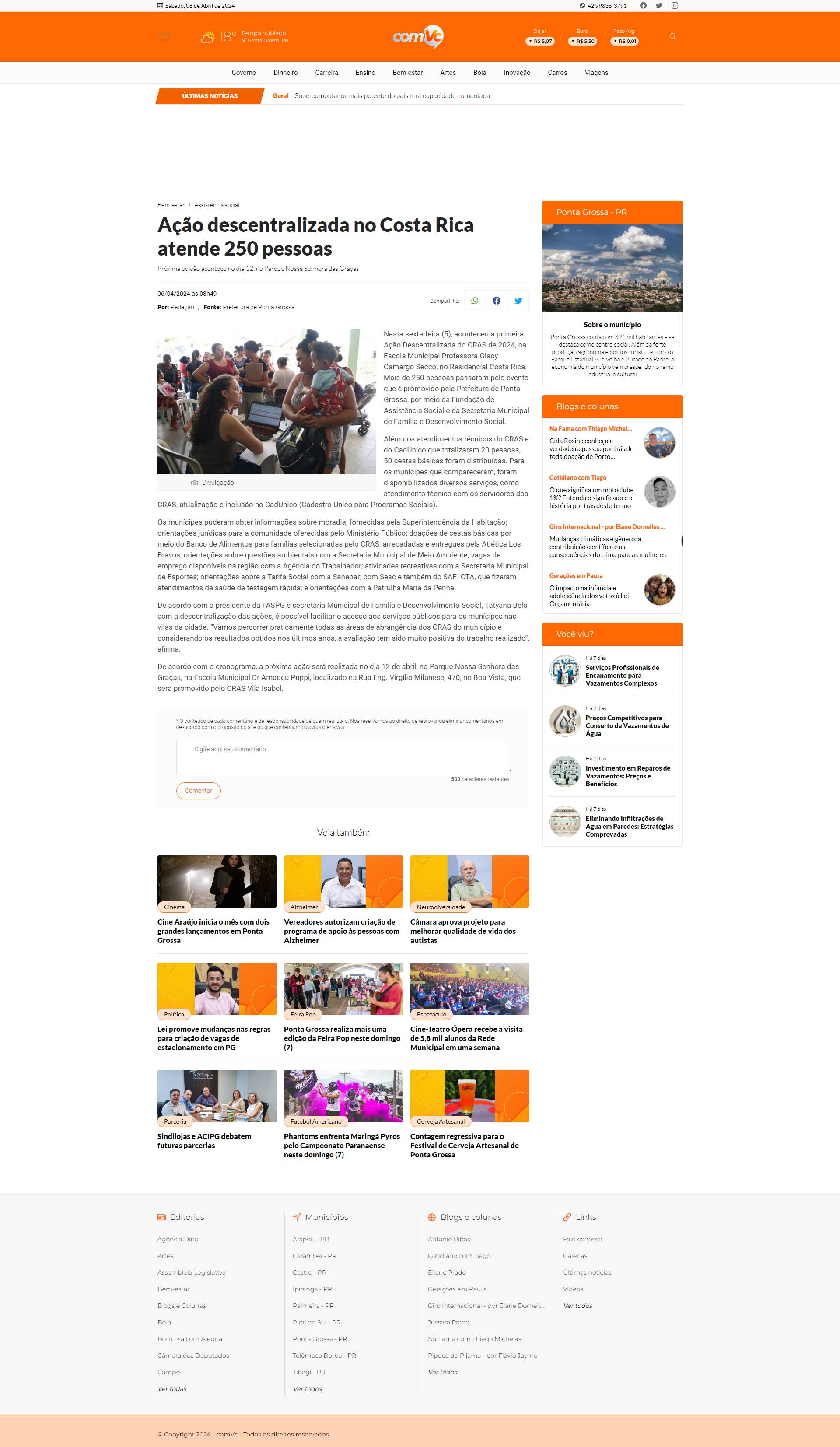 Nesta sexta-feira (5), aconteceu a primeira Ação Descentralizada do CRAS de 2024, na Escola Municipal Professora Glacy Camargo Secco, no Residencial Costa Rica. Mais de 250 pessoas passaram pelo evento que é promovido pela Prefeitura de Ponta Grossa, por meio da Fundação de Assistência Social e da Secretaria Municipal de Família e Desenvolvimento Social.