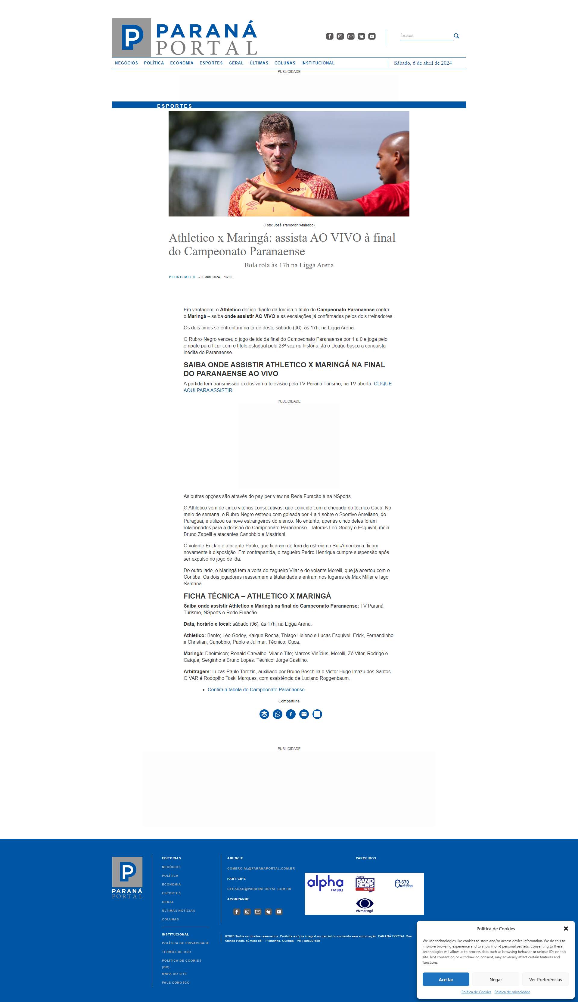 Em vantagem, o Athletico decide diante da torcida o título do Campeonato Paranaense contra o Maringá – saiba onde assistir AO VIVO e as escalações já confirmadas pelos dois treinadores.