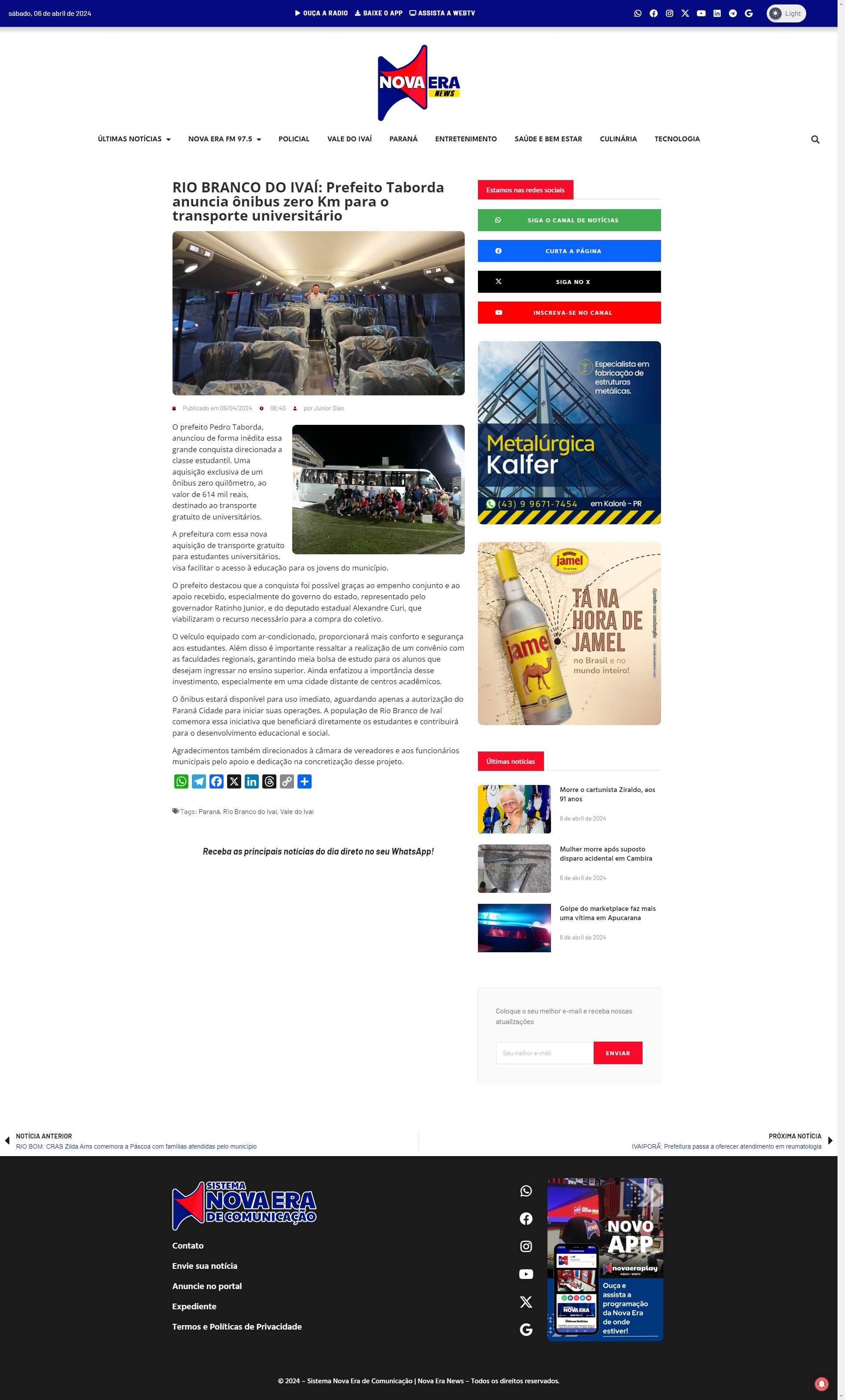 prefeito Pedro Taborda, anunciou de forma inédita essa grande conquista direcionada a classe estudantil. Uma aquisição exclusiva de um ônibus zero quilômetro, ao valor de 614 mil reais, destinado ao transporte gratuito de universitários.