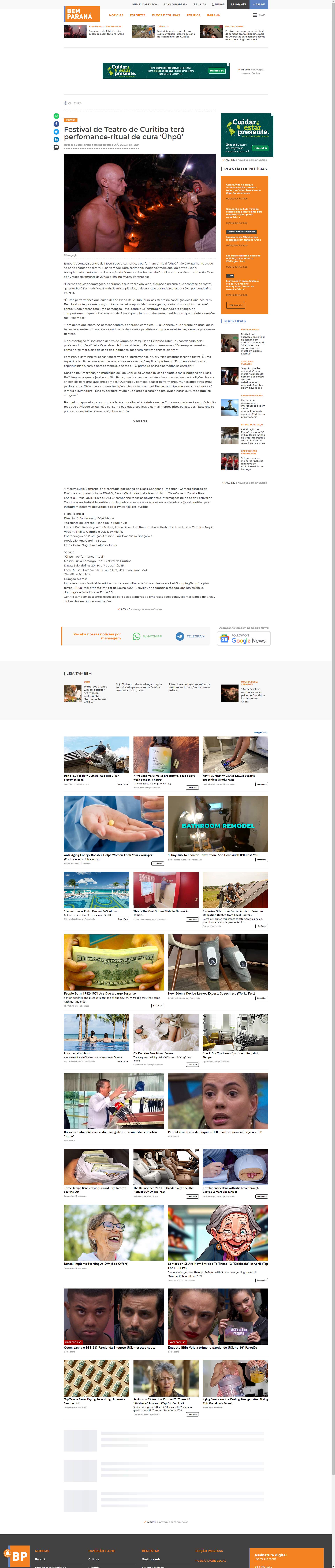 Embora aconteça dentro da Mostra Lucia Camargo, a performance-ritual “Ühpü” não é exatamente o que se pode chamar de teatro. É, na verdade, uma cerimônia indígena, tradicional do povo tukano, transplantada diretamente do coração da floresta até o Festival de Curitiba, com sessões nos dias 6 e 7 de abril, respectivamente às 20h30 e 19h, no
