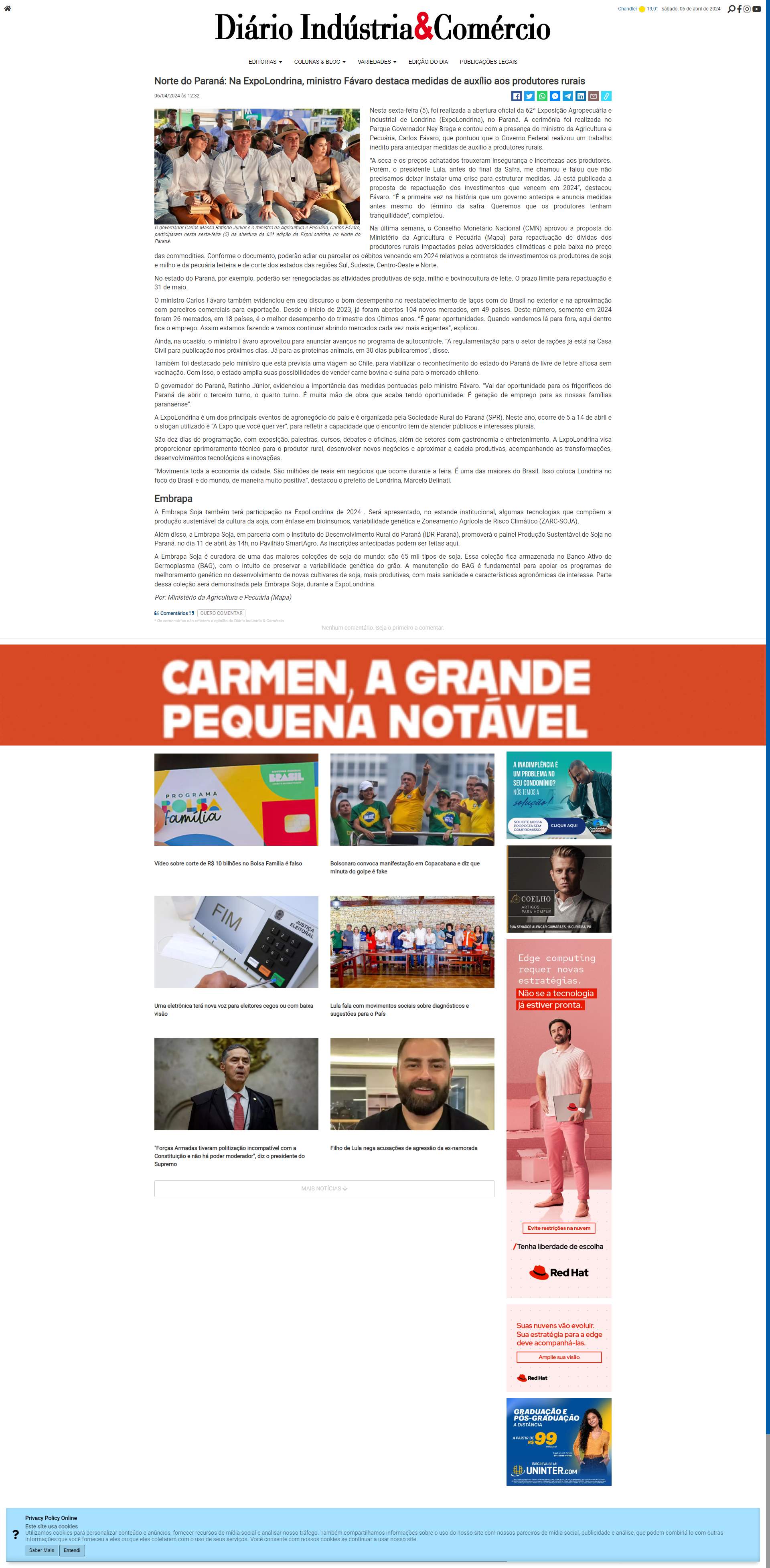 “Movimenta toda a economia da cidade. São milhões de reais em negócios que ocorre durante a feira. É uma das maiores do Brasil. Isso coloca Londrina no foco do Brasil e do mundo, de maneira muito positiva”, destacou o