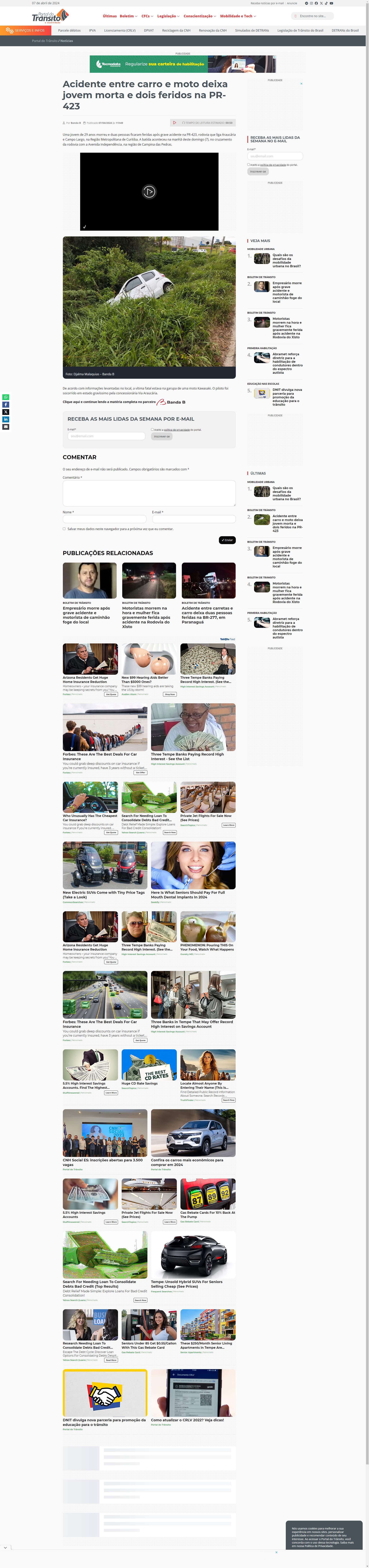 Uma jovem de 29 anos morreu e duas pessoas ficaram feridas após grave acidente na PR-423, rodovia que liga Araucária e Campo Largo, na Região Metropolitana de Curitiba. A batida aconteceu na manhã deste domingo (7), no cruzamento da rodovia com a Avenida Independência, na região de Campina das Pedras.