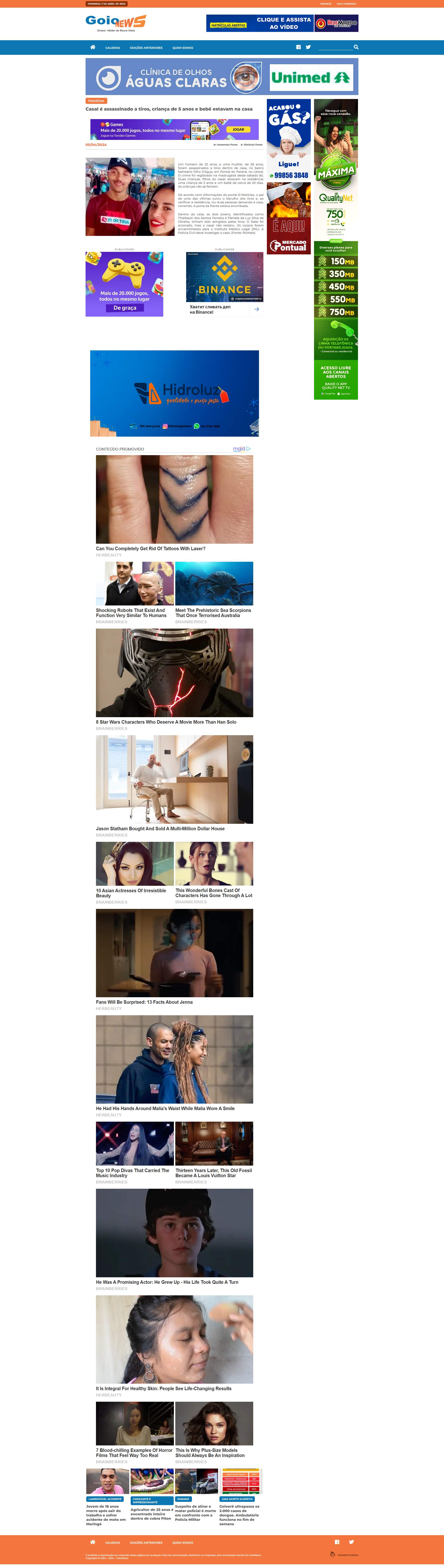 Paraná, no Litoral. O crime foi registrado na madrugada deste sábado (6). Duas crianças, filhos do casal, estavam na residência: uma criança de 5 anos e um bebê de cerca de 20 dias. As crianças não se feriram.De acordo com informações do portal E+Notícias, o pai de uma das vítimas ouviu o barulho dos tiros e, ao verificar a residência, viu duas pessoas deixando a casa, correndo. A porta da frente estava arrombada.