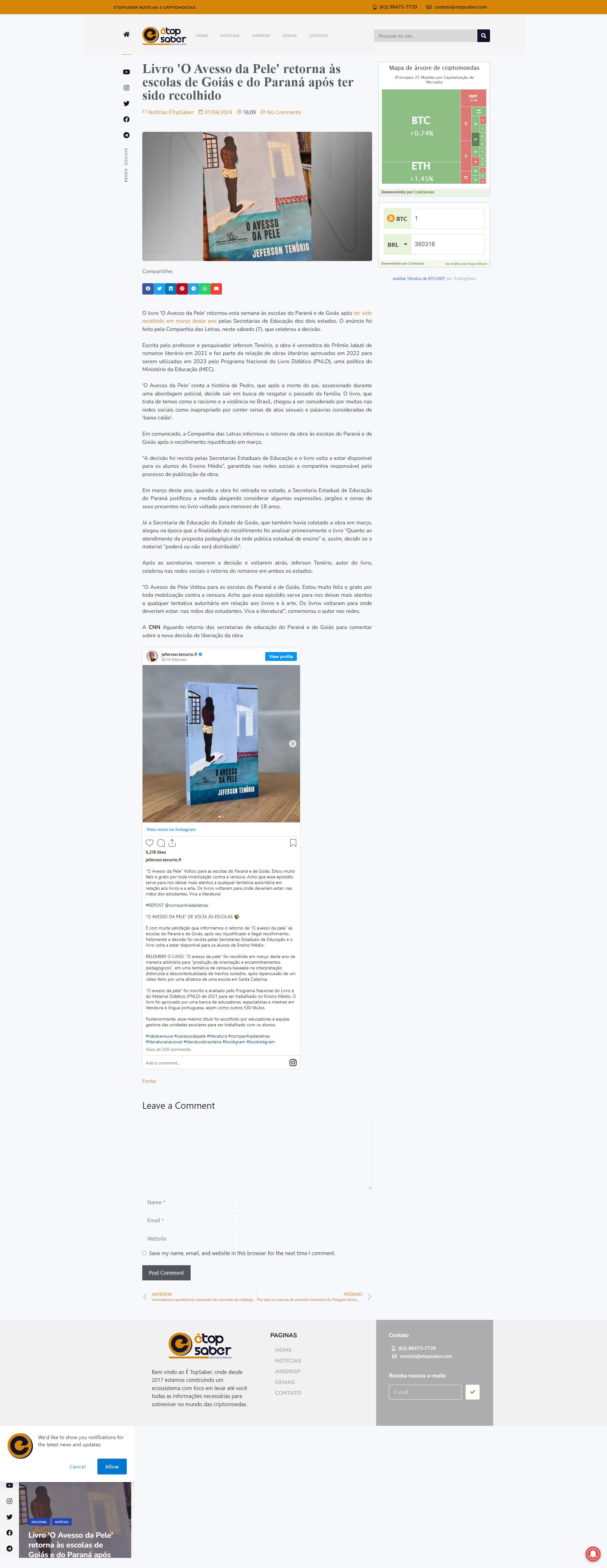 Paraná e de Goiás. Estou muito feliz e grato por toda mobilização contra a censura. Acho que esse episódio serve para nos deixar mais atentos a qualquer tentativa autoritária em relação aos livros e à arte. Os livros voltaram para onde deveriam estar: nas mãos dos estudantes. Viva a literatura!”, comemorou o autor nas redes.