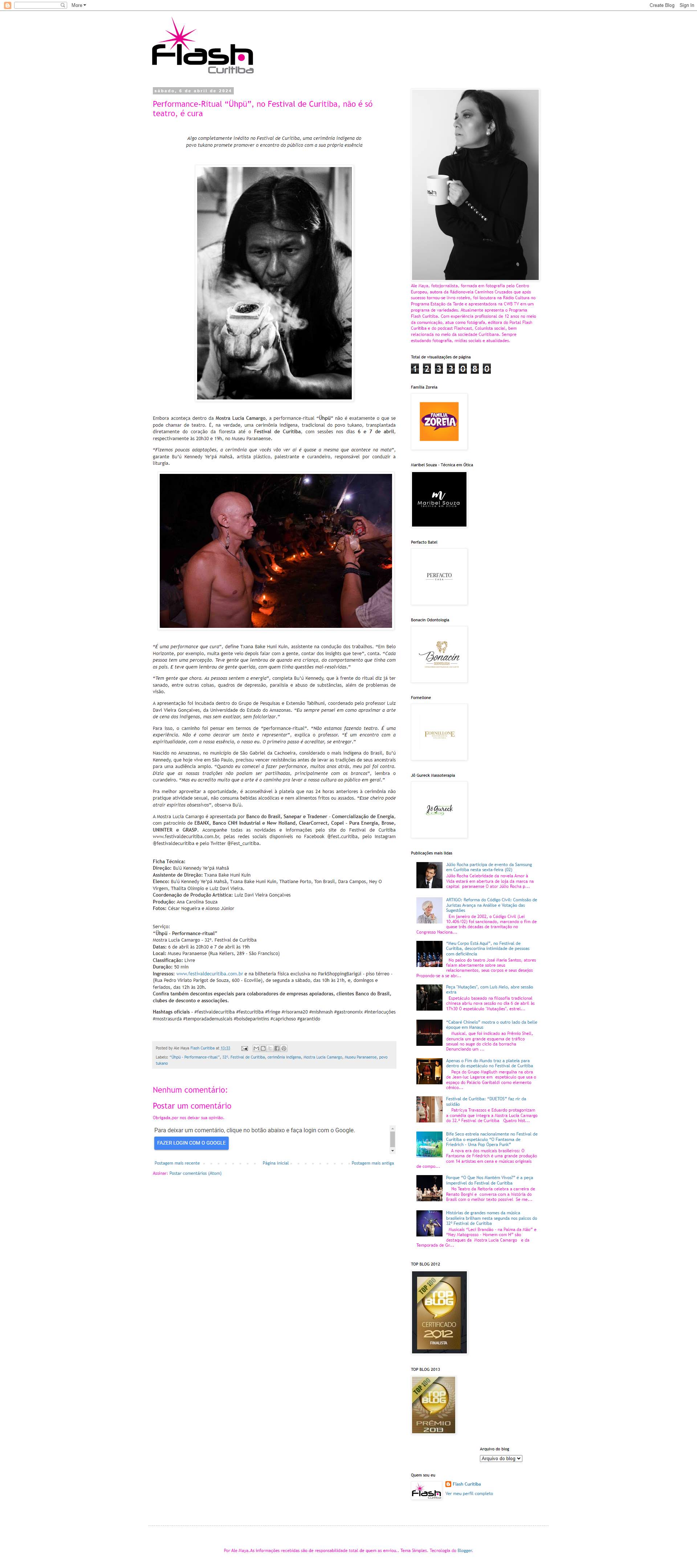 Embora aconteça dentro da Mostra Lucia Camargo, a performance-ritual “Ühpü” não é exatamente o que se pode chamar de teatro. É, na verdade, uma cerimônia indígena, tradicional do povo tukano, transplantada diretamente do coração da floresta até o Festival de Curitiba, com sessões nos dias 6 e 7 de abril, respectivamente às 20h30 e 19h, no