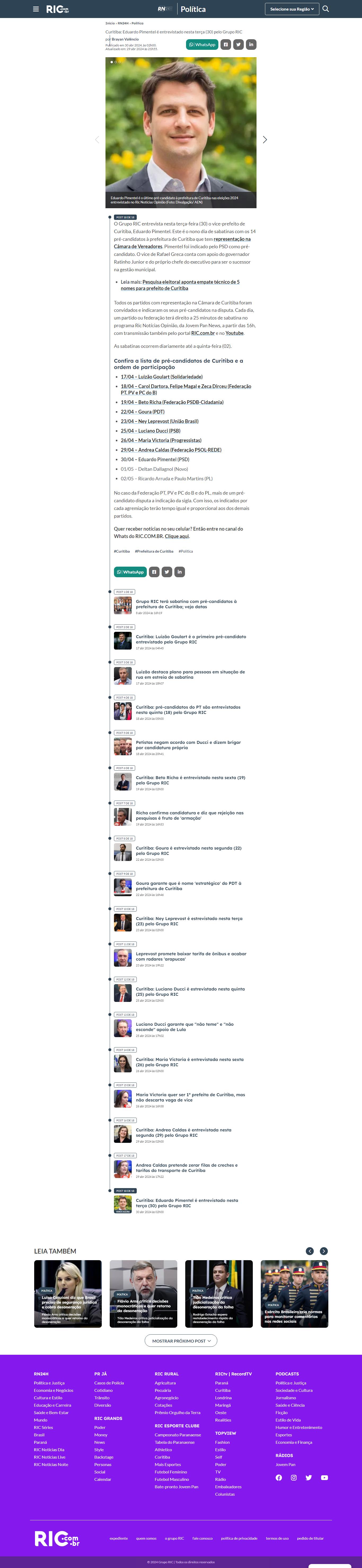 Todos os partidos com representação na Câmara de Curitiba foram convidados e indicaram os seus pré-candidatos na disputa. Cada dia, um partido ou federação terá direito a 25 minutos de sabatina no programa Ric Notícias Opinião, da Jovem Pan News, a partir das 16h, com transmissão também pelo portal RIC.com.br e no Youtube.