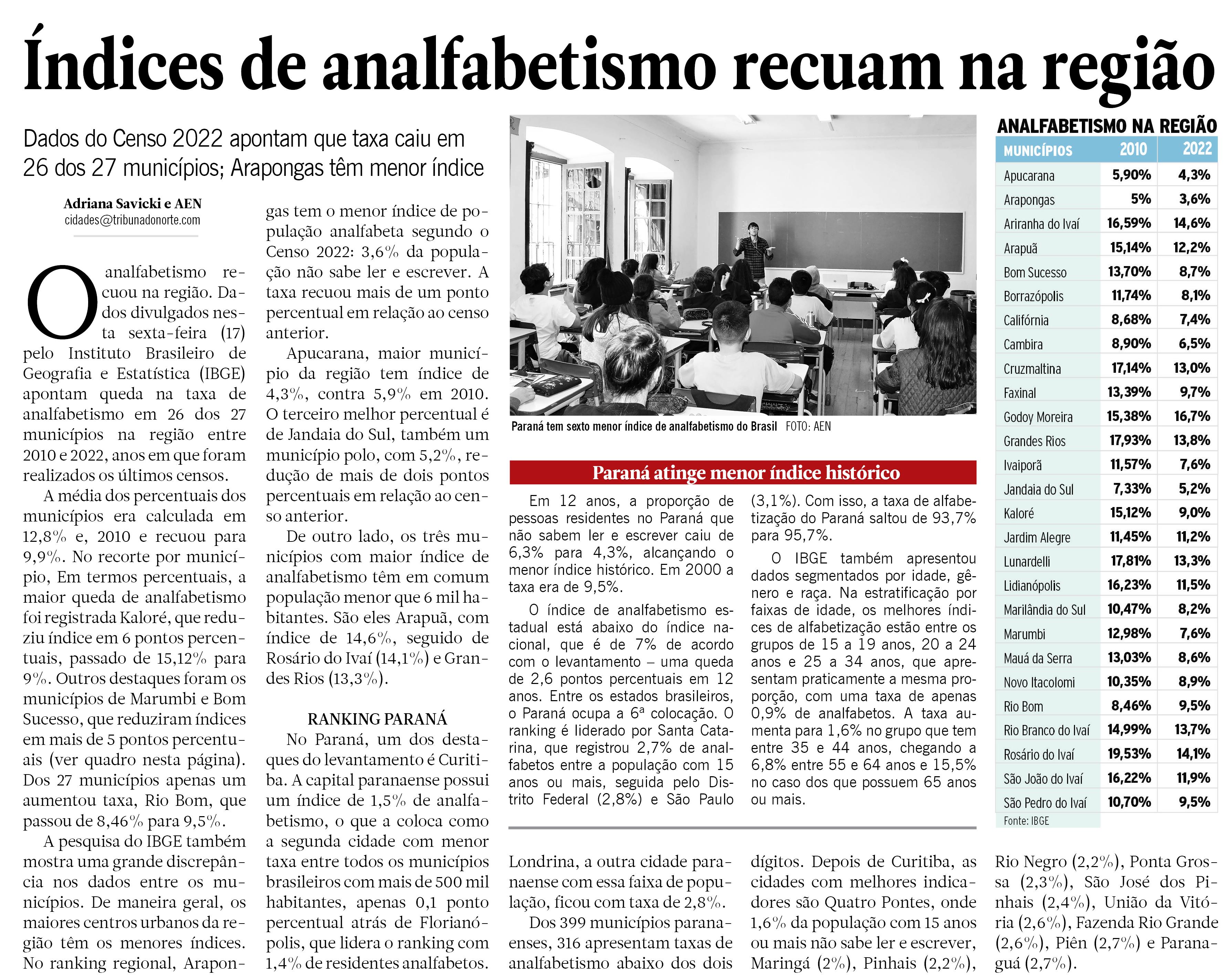 índices de analfabetismo recuam na região