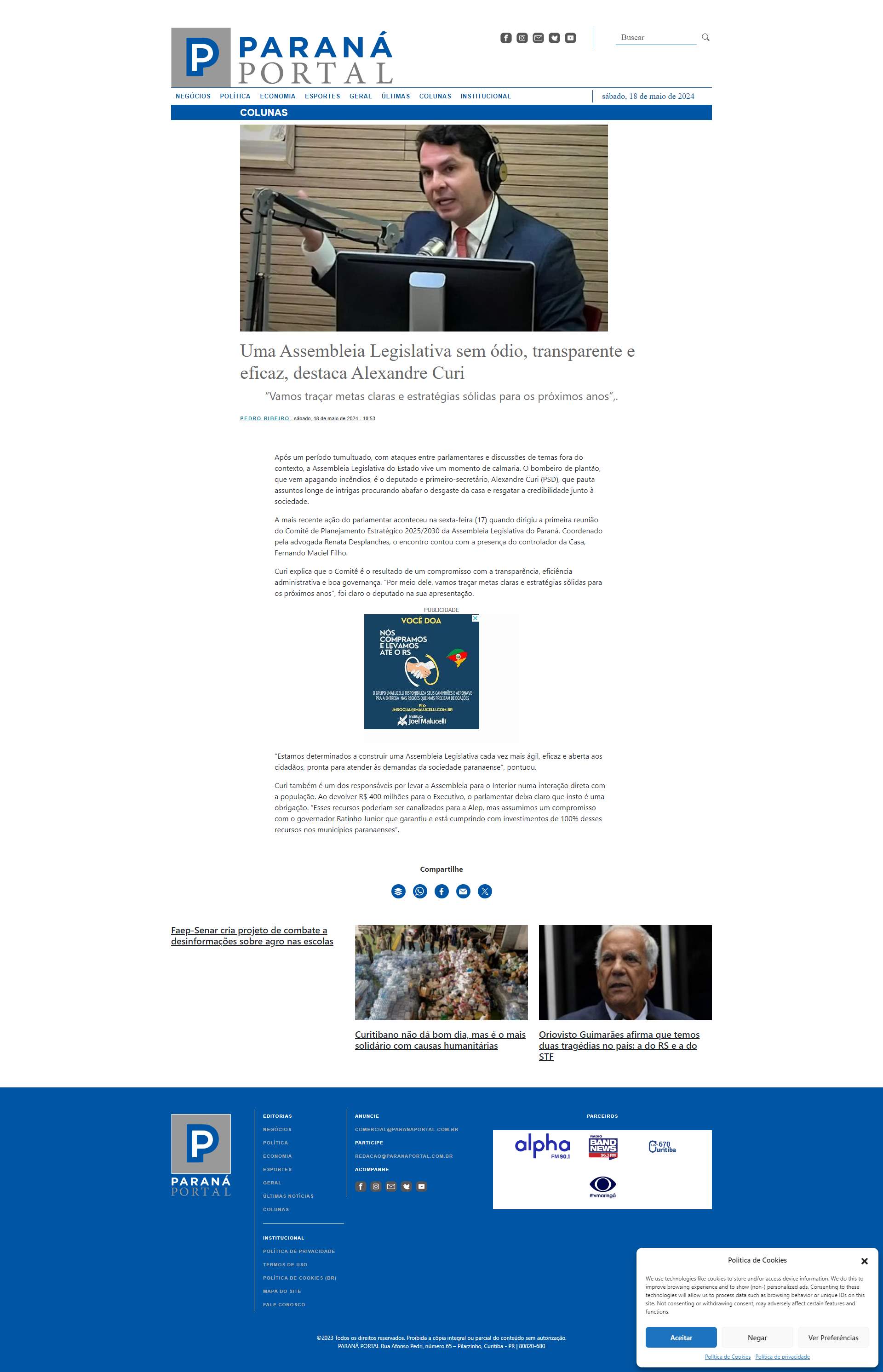 Assembleia Legislativa sem ódio, transparente e eficaz, destaca Alexandre Curi apareceu primeiro em