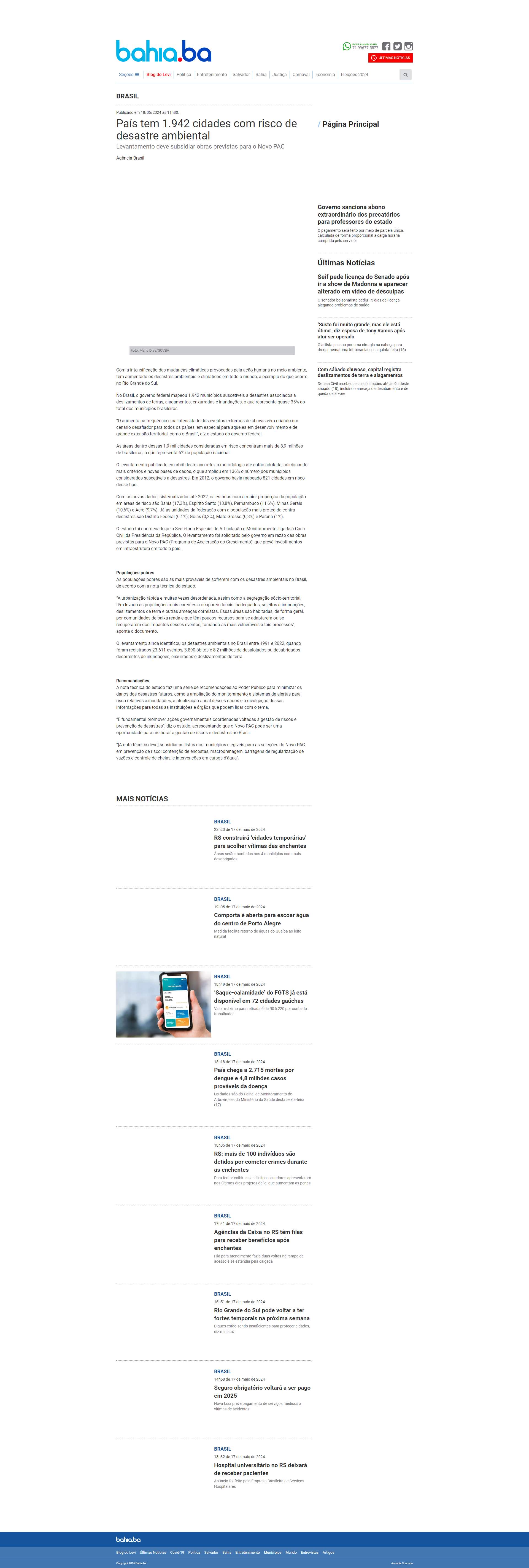 No Brasil, o governo federal mapeou 1.942 municípios suscetíveis a desastres associados a deslizamentos de terras, alagamentos, enxurradas e inundações, o que representa quase 35% do total dos municípios brasileiros.