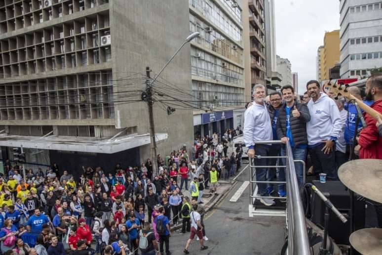 O evento começou na Praça Santos Andrade, onde Eduardo Pimentel, acompanhado pelo governador em exercício,