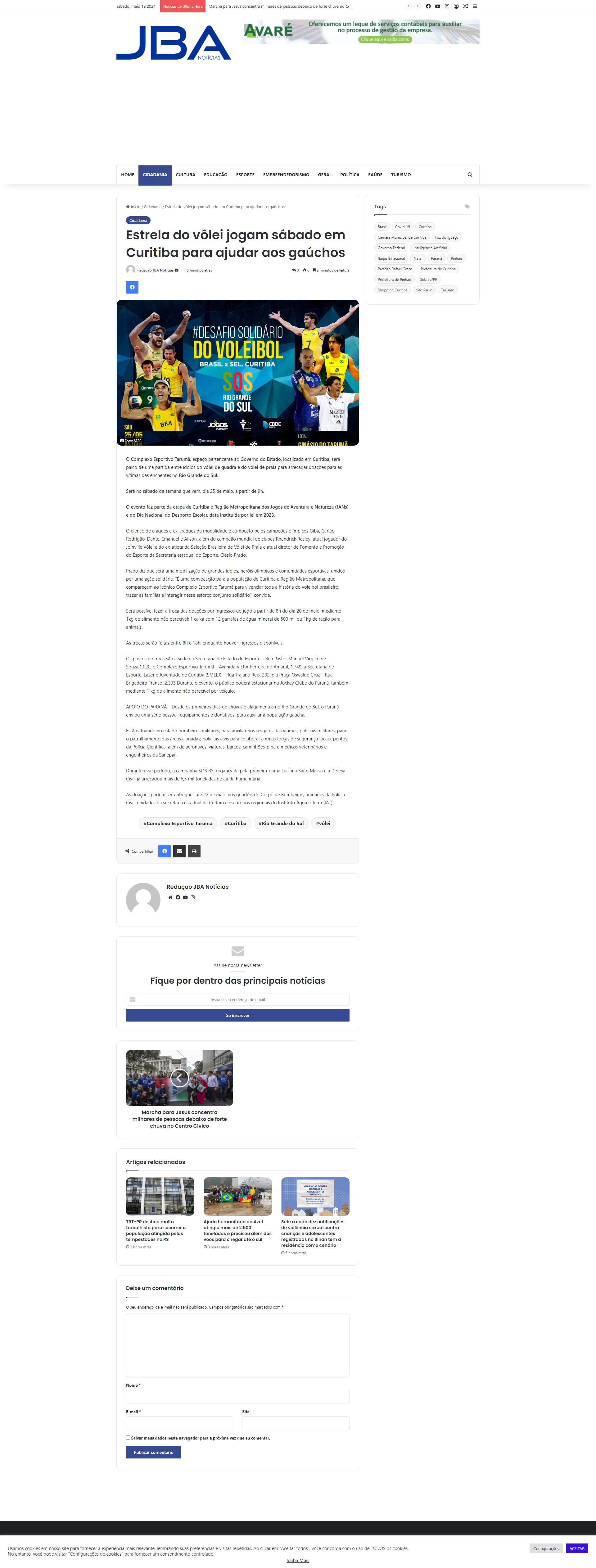 O Complexo Esportivo Tarumã, espaço pertencente ao Governo do Estado, localizado em Curitiba, será palco de uma partida entre ídolos do vôlei de quadra e do vôlei de praia para arrecadar doações para as vítimas das enchentes no Rio Grande do Sul.