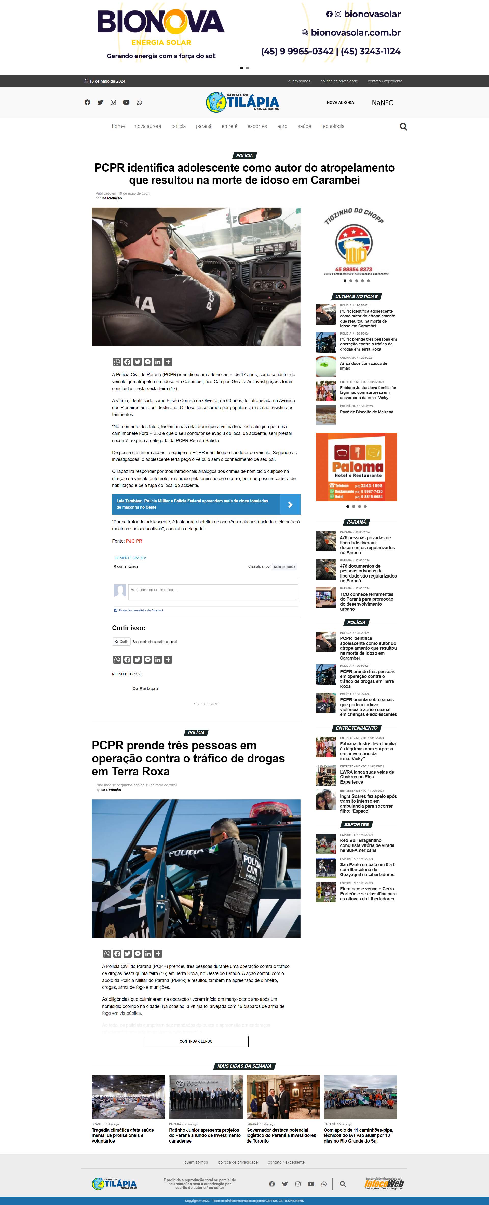 PCPR identificou o condutor do veículo. Segundo as investigações, o adolescente teria pego o veículo sem o conhecimento de seu pai.