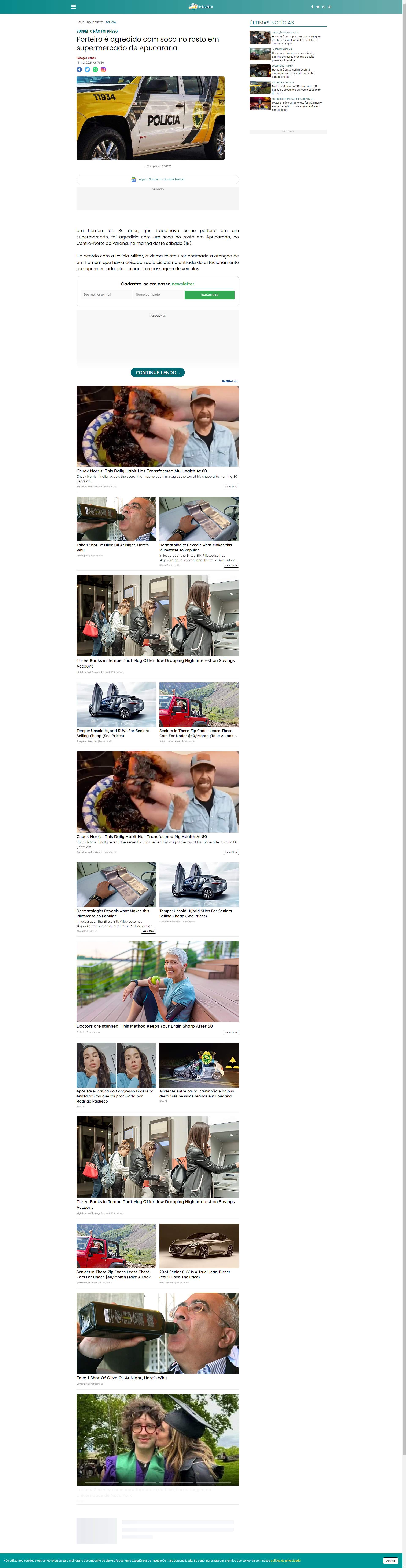 Um homem de 80 anos, que trabalhava como porteiro em um supermercado, foi agredido com um soco no rosto em Apucarana, no Centro-Norte do